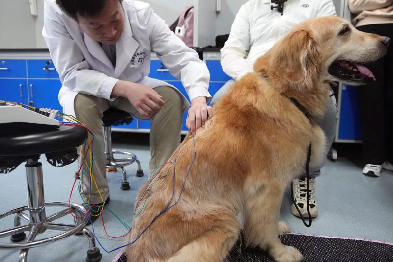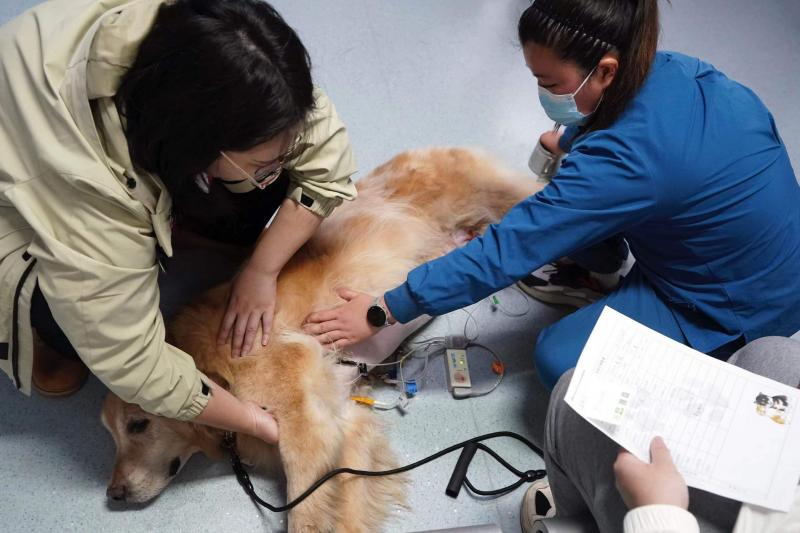 體檢現(xiàn)場,導(dǎo)盲犬“沙果”的主人張女士告訴北京青年報記者,“沙果”由于年齡原因以及工作性質(zhì),感覺雙后肢活動不協(xié)調(diào),希望這次好好檢查一下,看如何治療。動物醫(yī)院診療團(tuán)隊負(fù)責(zé)人陳武教授、姜代勛副教授、段慧琴副教授、張華副教授為“沙果”進(jìn)行了全面的檢查并會診,安排了針灸治療,也為張女士詳細(xì)介紹了治療方案和飼養(yǎng)注意事項。