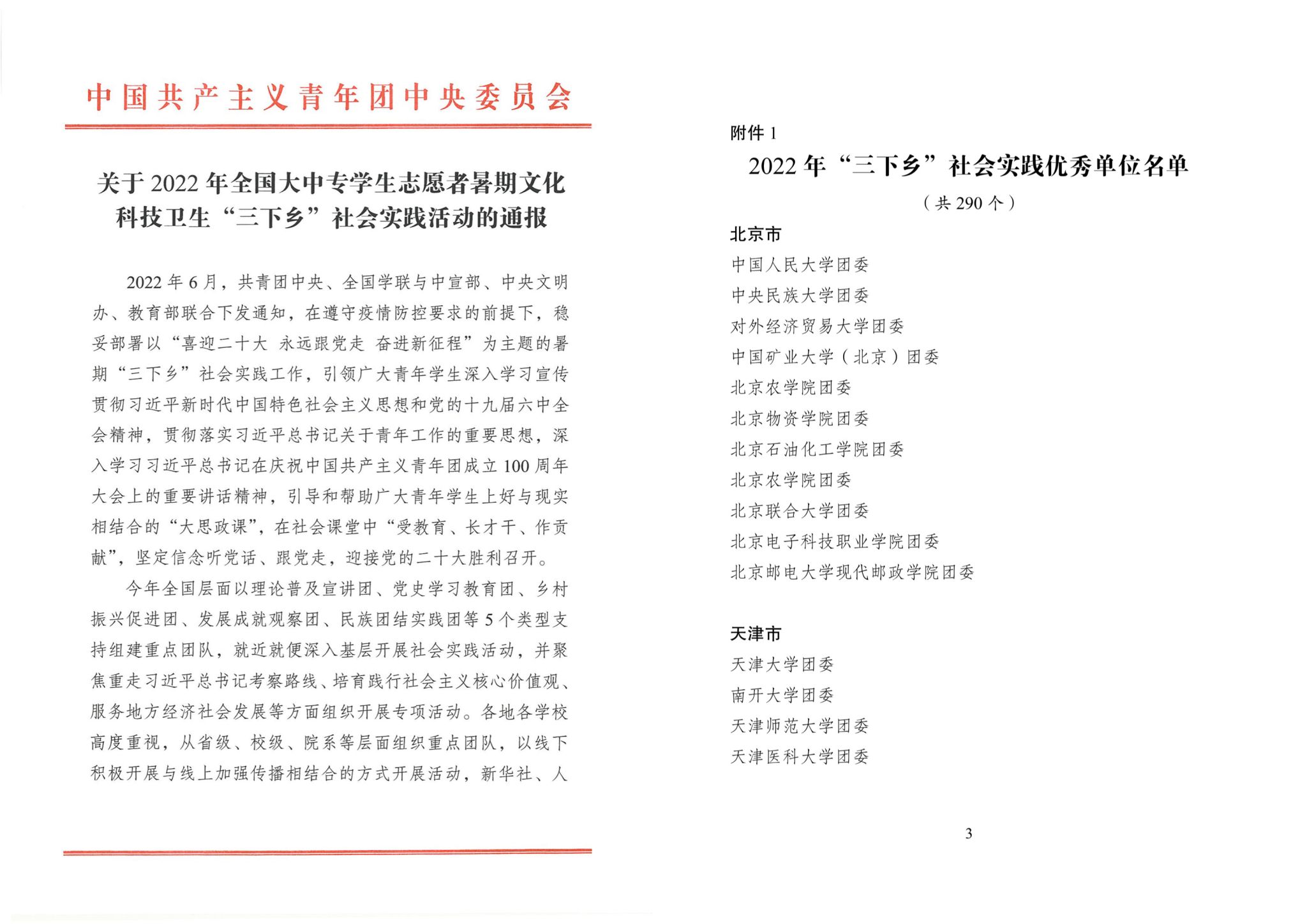 深化推進共青團、學(xué)生會和學(xué)生社團改革創(chuàng)新,校團委獲評“北京市五四紅旗團委”,2次榮獲全國大中專學(xué)生志愿者暑期“三下鄉(xiāng)”社會實踐先進單位,連續(xù)16年被評為首都高校社會實踐先進單位。