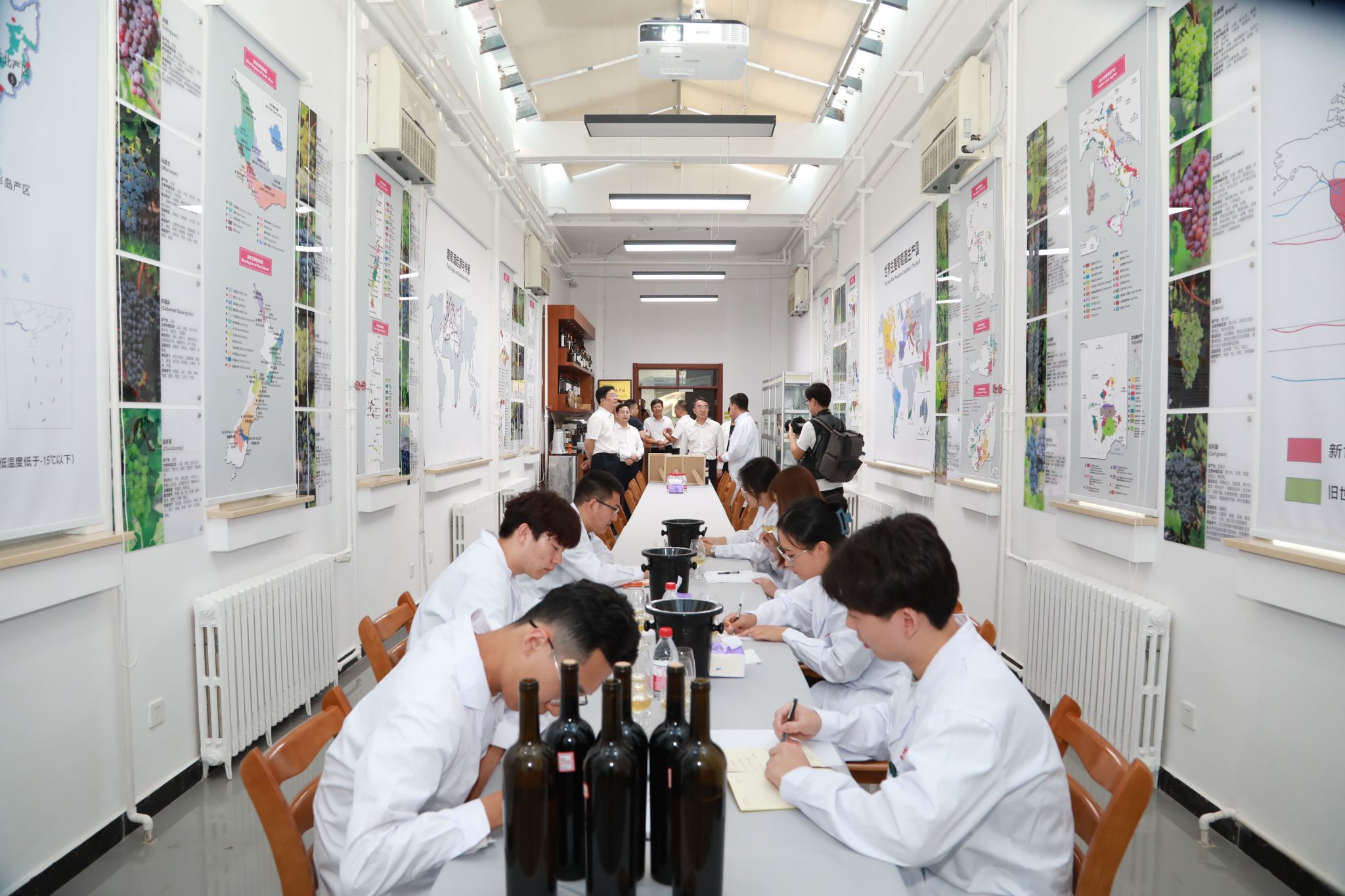 在北京農學院食品科學與工程學院,游鈞聽取了學院基層黨建工作情況介紹,深入了解學院黨組織政治功能和組織功能發揮情況。游鈞先后來到糧油加工實驗室、啤酒和葡萄酒釀造中試車間、益生菌發酵中試車間、果蔬加工及貯藏實驗室,參觀了師生依托學科專業優勢制作的特色烘焙作品、運用太空誘變篩選出的優良酵母菌與企業合作開發的“太空啤酒”、自主研發的榮獲“布魯塞爾國際葡萄酒大賽金獎”的“北農莊園”葡萄酒,詳細了解了學校教師制定鮮切蔬菜領域首個“國標”《鮮切果蔬生產衛生規范》、深耕鮮切果蔬保鮮領域取得的成果以及益生菌發酵技術科技成果轉化情況。了解了學校承擔的“一帶一路國際葡萄與葡萄酒產業科技創新院”平臺建設情況,以及國家留學基金委鄉村振興葡萄與葡萄酒國際人才培養項目推進情況。