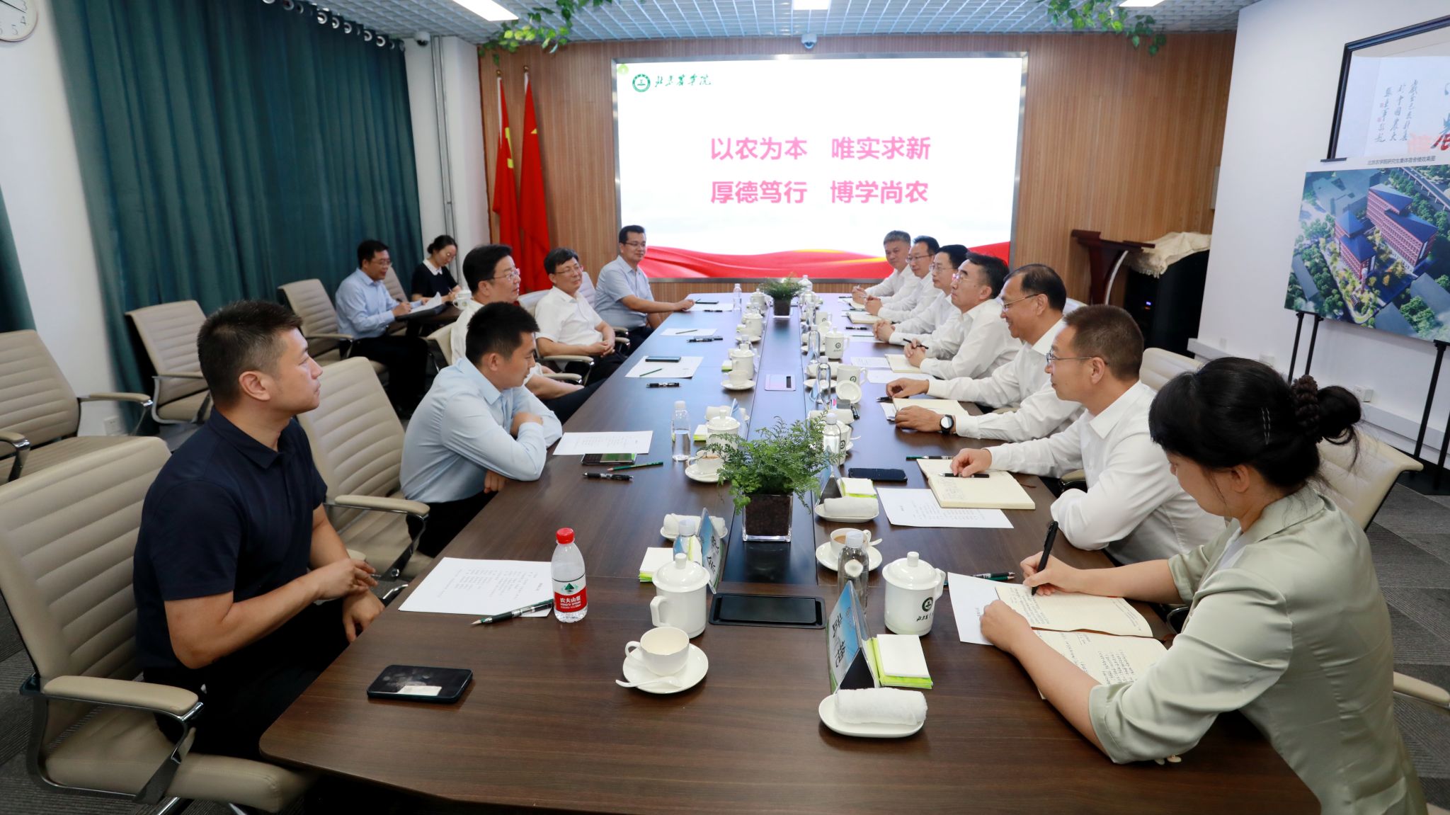 游鈞一行聽取了北京農學院工作匯報。北京農學院黨委書記趙鋒匯報了學校聚焦“教育強國、北農何為”“農業強國、北農何為”這一重要時代課題,以勝利召開第四次黨代會為契機,在以高質量黨建引領高質量發展方面開展的工作和取得的成效,以及學校全面建設都市農林特色高水平應用型大學的部署和舉措。黨委副書記、院長段留生匯報了學校歷史沿革、辦學特色以及在人才培養、學科專業建設、科技創新和社會服務方面的工作進展情況和取得的主要成效。游鈞對學校的辦學特色、發展定位以及在知農愛農新型人才培養、服務首都全面推進鄉村振興和“四個中心”建設所取得的成績給予充分肯定,希望學校深入學習貫徹黨的二十大精神,始終牢記“為黨育人、為國育才”初心使命,落實立德樹人根本任務,立足“高水平應用型大學”發展定位,充分發揚都市農林特色和發展優勢,主動融入首都發展大局,不斷提高人才培養質量和科技賦能鄉村振興本領,為服務新時代首都發展和實現農業農村現代化貢獻北京農學院力量,以實際行動回答好“教育強國、北農何為”“農業強國、北農何為”這一重要時代課題。
