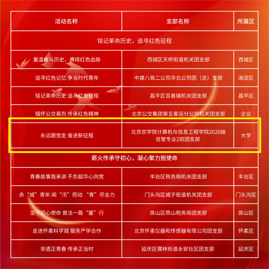 為深入學習貫徹黨的二十大精神,以主題教育為契機,深化共青團組織改革和建設,增強團組織效能,激發(fā)團組織活力,團市委推出年度主題團日活動月歷,并在全市范圍內開展2023年“十佳主題團日活動”征集工作。我校智能科學與工程學院2020級信管專業(yè)2班團支部開展的“永遠跟黨走 奮進新征程”主題團日活動,從全市近200個團支部主題團日活動案例中脫穎而出,獲評“月度十佳主題團日活動”。
