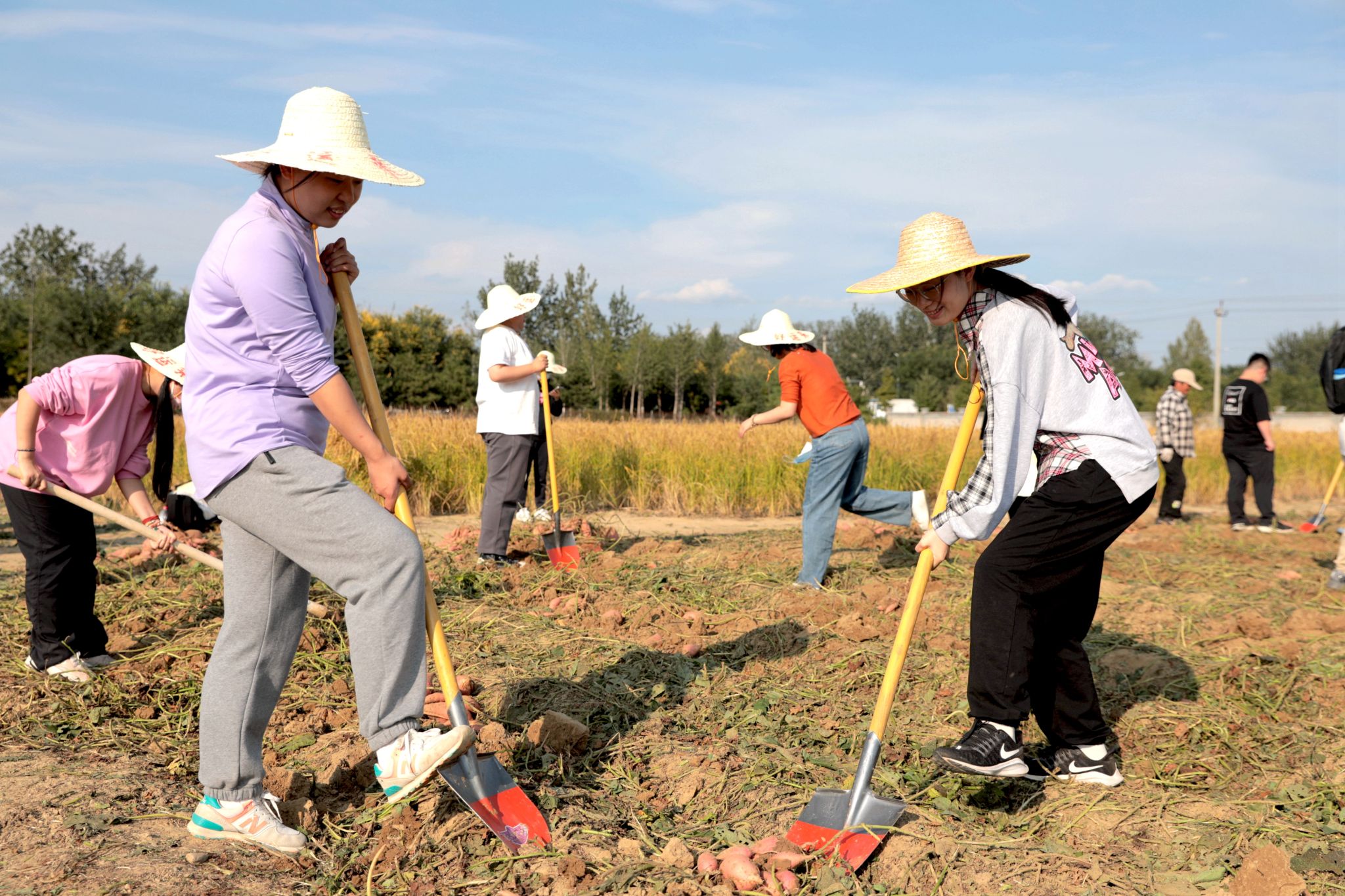 參加活動(dòng)的百余名北京市第一〇一中學(xué)未來(lái)科學(xué)城學(xué)校師生一邊在專業(yè)老師指導(dǎo)下學(xué)習(xí)采收,一邊了解農(nóng)作物的生長(zhǎng)習(xí)性、種植方式。帶隊(duì)教師表示這不僅是一堂勞動(dòng)實(shí)踐課,也是一堂農(nóng)事知識(shí)課、農(nóng)業(yè)知識(shí)科普課。中學(xué)生們興奮地體驗(yàn)各種農(nóng)具的使用,分工協(xié)作刨挖果實(shí),“這樣的勞動(dòng)課太有意思了,不僅學(xué)會(huì)了勞作,了解了很多作物知識(shí),還享受了采收的樂(lè)趣?!币晃煌瑢W(xué)說(shuō)。