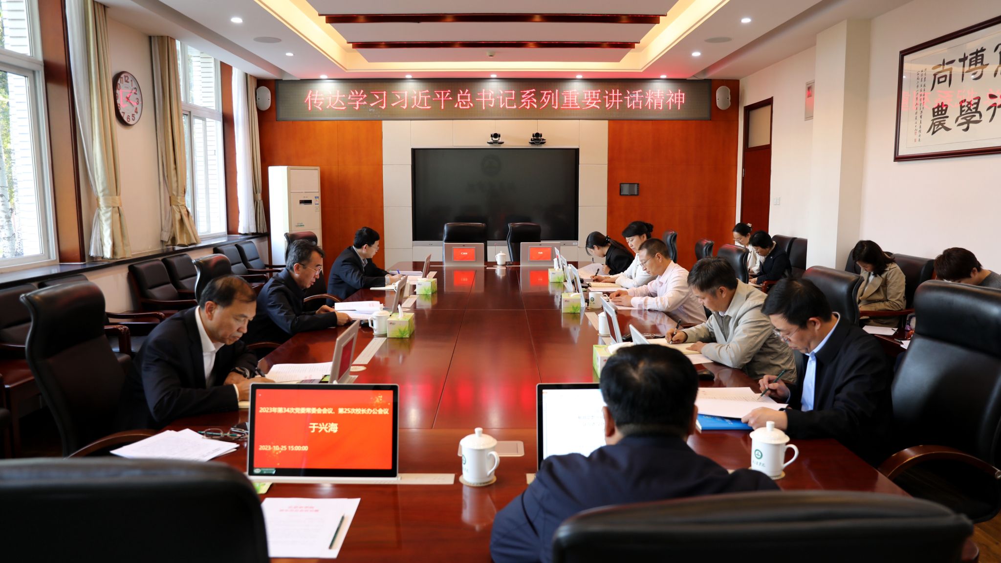 10月25日下午,學校黨委常委會召開會議,傳達學習習近平主席在第三屆“一帶一路”國際合作高峰論壇開幕式上的主旨演講精神以及習近平總書記在江西考察時的重要講話和指示精神,研究推動學校以高質量發展更好地融入“一帶一路”建設和服務全面推進鄉村振興。會議由黨委書記趙鋒主持。