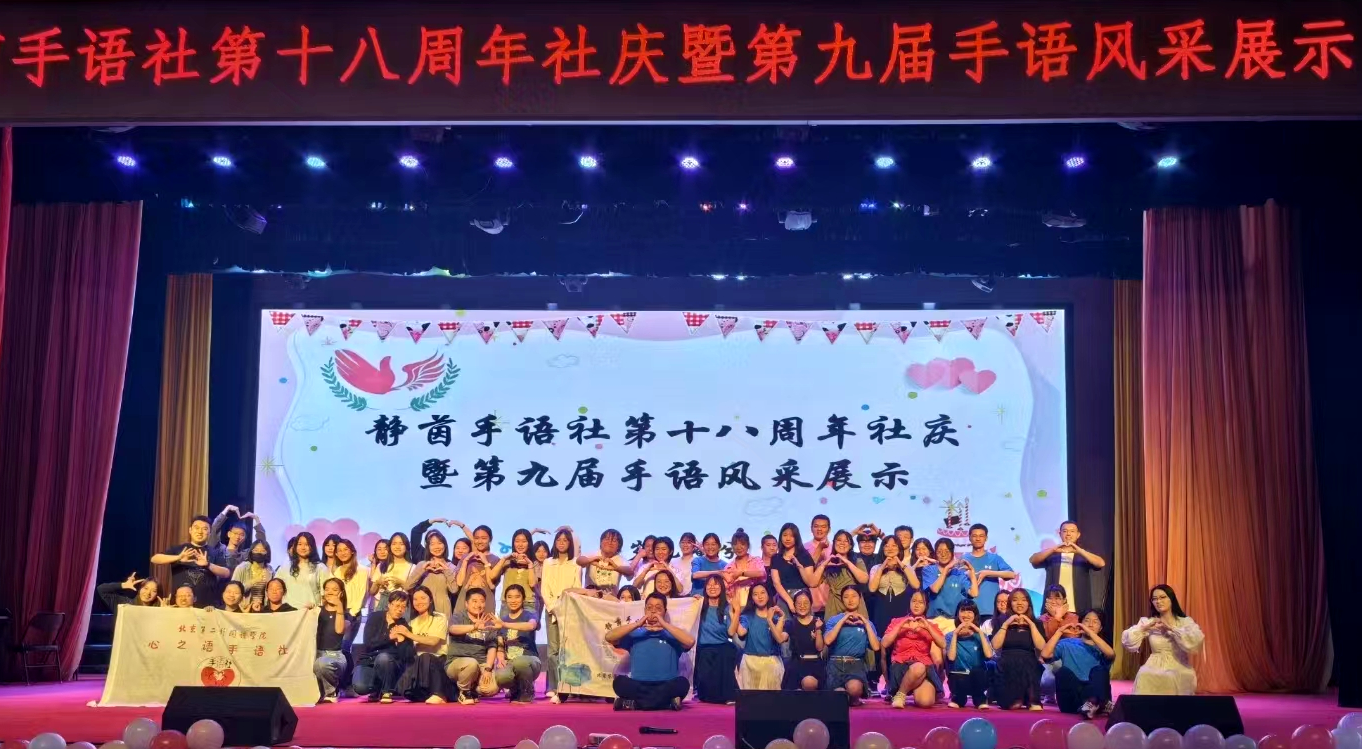 我校靜茵手語社成立于2005年,社團以“用靈動的雙手架起溝通的橋梁”為宗旨,努力學習和推廣手語,促進大學生對聽障人士群體的了解與關愛,幫助更多聽障人士解決生活中的困難。靜茵手語社積極參加各項公益活動,先后參與首都醫科大學附屬北京朝陽醫院義診翻譯活動、百名手語族獻禮國際殘疾人日《愛的陽光》視頻錄制、學校手語版冬奧主題曲《一起向未來》錄制、“關愛自閉癥兒童之陪伴是最長情的告白”主題歡樂融合公益活動。社團還先后獲首都高校手語社團聯盟第一屆手語大賽團體及個人賽一等獎、“手傳心聲——傳遞指尖上的愛”手語大賽團體三等獎、個人一等獎等。