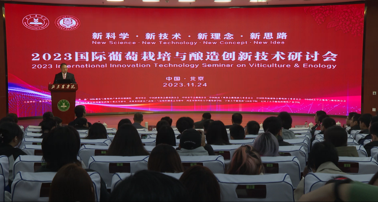 為推動葡萄與葡萄酒產(chǎn)業(yè)高質(zhì)量發(fā)展,促進國內(nèi)外高等院校、科研院所和行業(yè)協(xié)會知識共享與技術(shù)交流,11月24日,2023國際葡萄栽培與釀造創(chuàng)新技術(shù)研討會在我校召開。學(xué)校黨委副書記、院長段留生致歡迎辭,西北農(nóng)林科技大學(xué)副校長房玉林向大會召開表示祝賀,我校黨委常委、副院長張德強主持開幕式。中國酒業(yè)協(xié)會、懷來縣人才中心、懷來縣葡萄酒局、昌黎縣葡萄酒局以及北京房山區(qū)文旅局葡萄酒管理部門領(lǐng)導(dǎo)出席開幕式。來自國內(nèi)外葡萄酒行業(yè)專家學(xué)者、從業(yè)人員以及學(xué)生代表150余人在線下參加會議;法國、美國、德國、澳大利亞、智利、新西蘭、格魯吉亞、亞美尼亞的多位葡萄酒領(lǐng)域?qū)<彝ㄟ^線上作專題報告,2000余名業(yè)界人士通過線上形式參加會議。