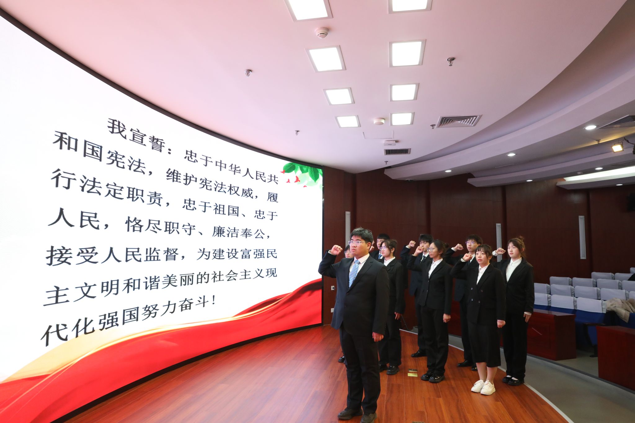 講座結(jié)束后,文法與城鄉(xiāng)發(fā)展學(xué)院普法宣講團(tuán)成員帶領(lǐng)全體法學(xué)專業(yè)學(xué)生舉行了憲法宣誓活動。同學(xué)們右手高舉、誓言鏗鏘,表達(dá)為弘揚(yáng)憲法精神、建設(shè)社會主義法治文化貢獻(xiàn)力量的信心和決心。