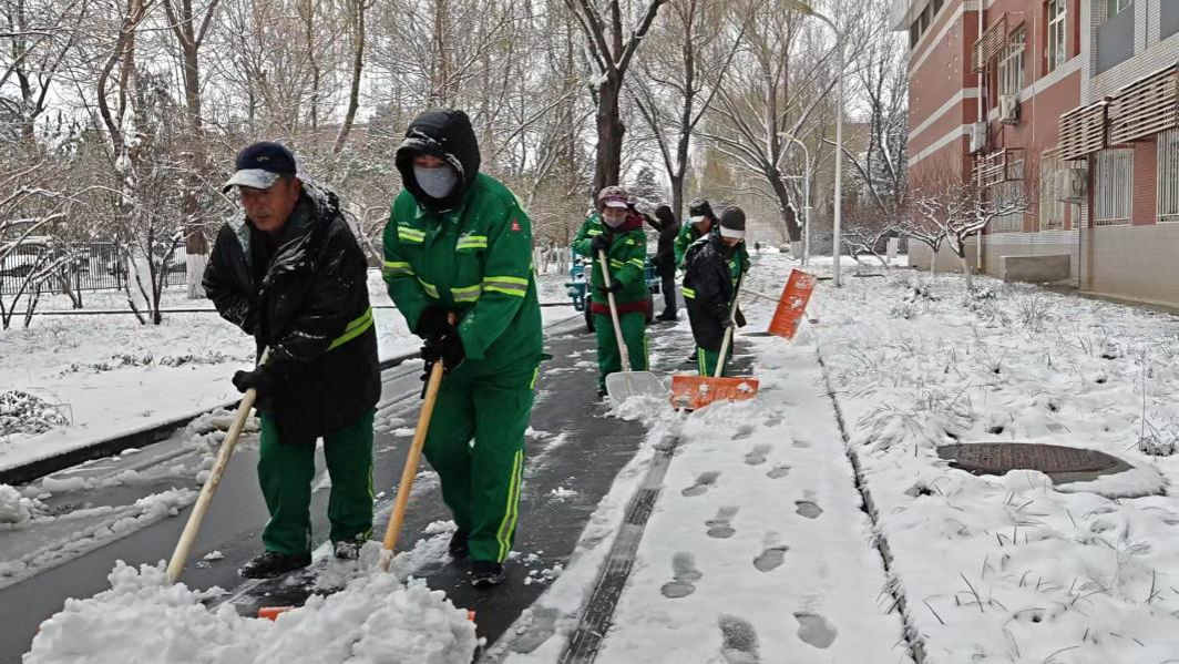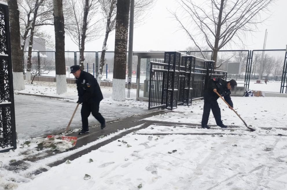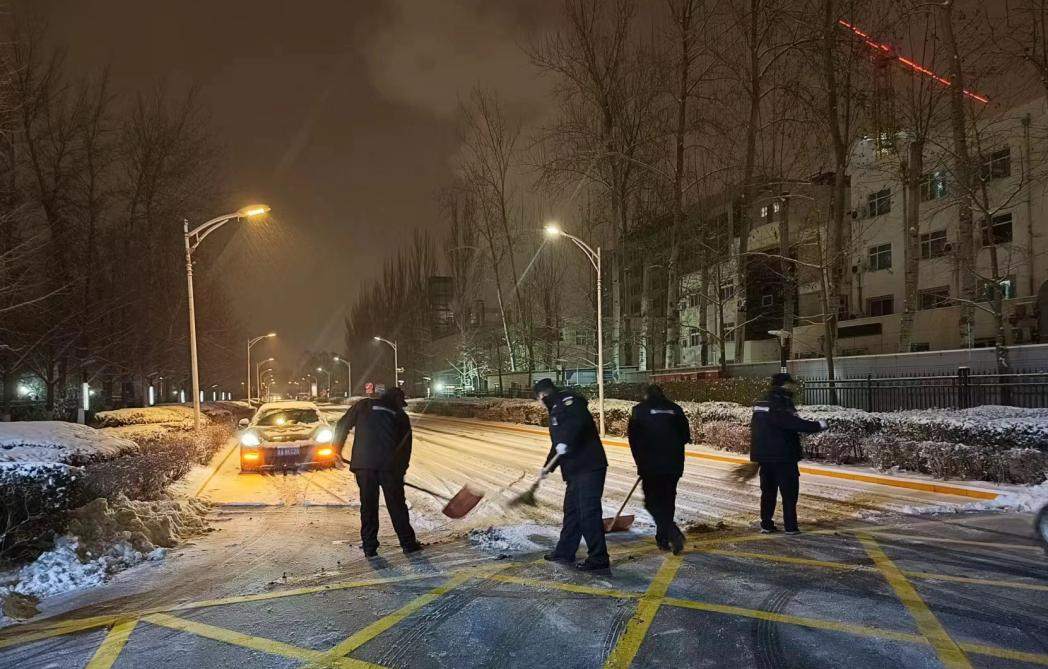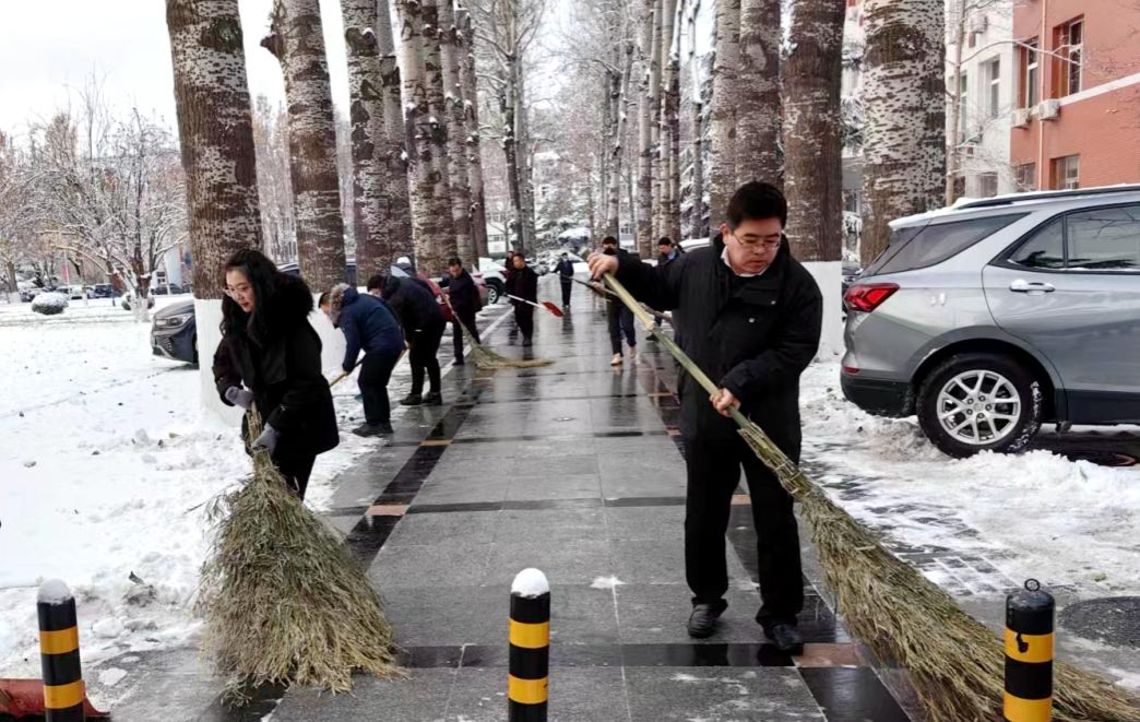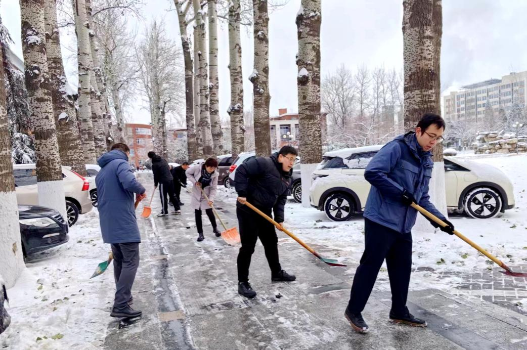 中央氣象臺發(fā)布小到中雪、道路結冰黃色預警后,后勤基建處聞雪而動,連夜制定應急預案,組建“清掃突擊隊”,分組包片、聯(lián)動工作,全力保障師生安全出行。