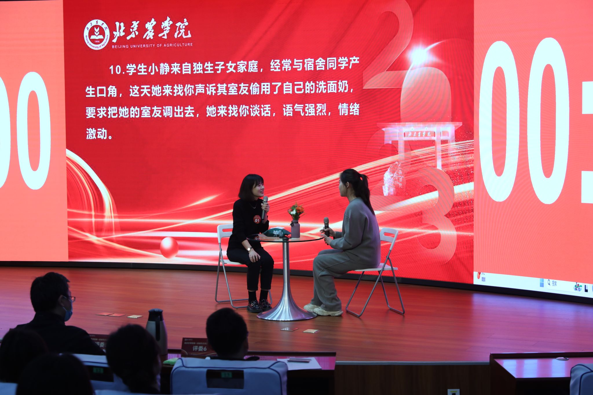 本屆輔導員素質能力大賽全面對標北京市同類比賽,共設置基礎知識測試、課堂展學、案例研討、談心談話4個比賽環節,全面考察和展示我校輔導員的理論水平、職業能力和專業素養,達到“以賽代練、以賽代訓、以賽促學”的目標。