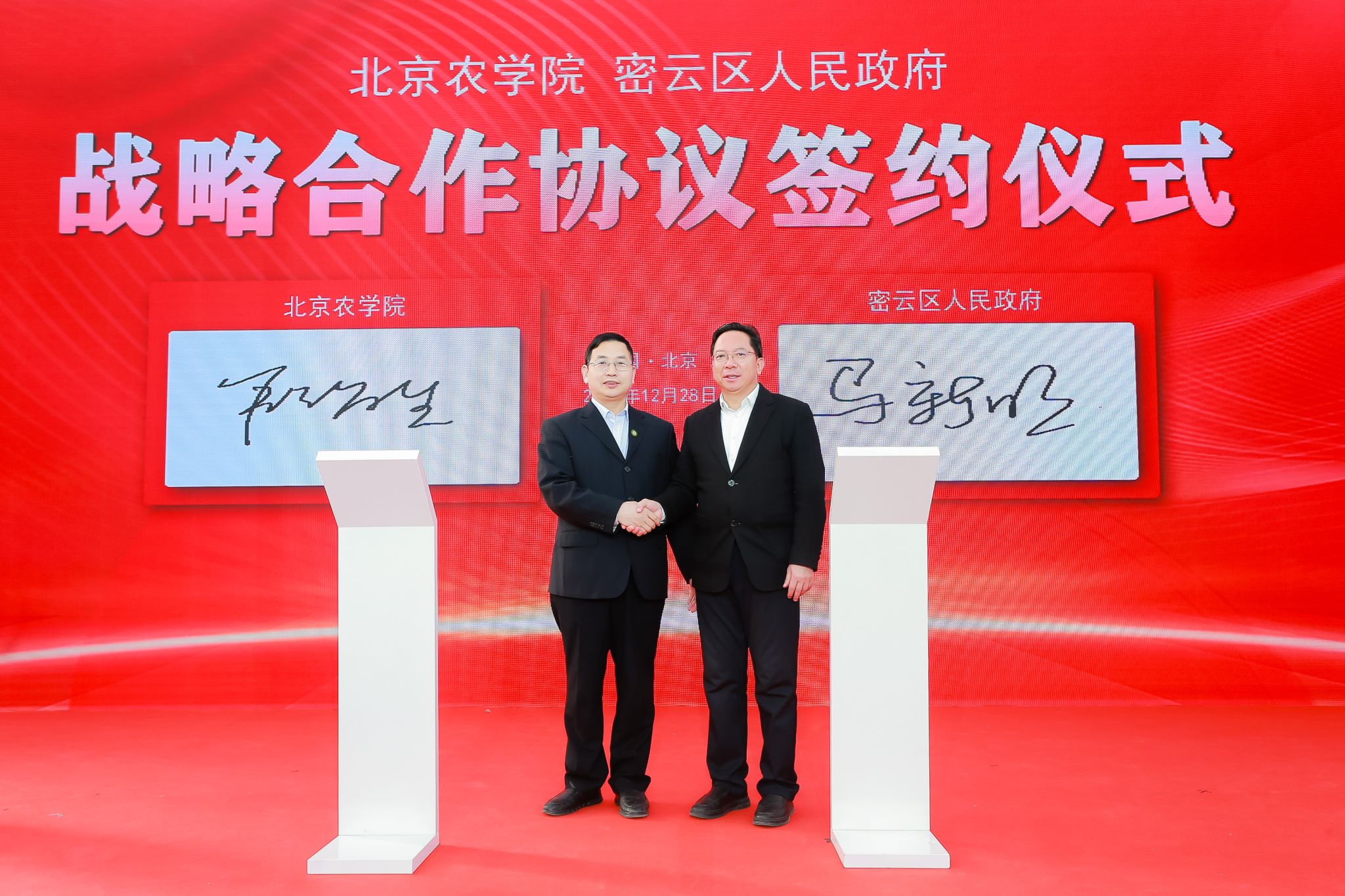 12月28日上午,在密云鄉村振興發展大會暨首屆密云西紅柿節開幕式上,北京農學院黨委副書記、院長段留生,密云區委副書記、區長馬新明分別代表學校和密云區簽訂戰略合作協議。