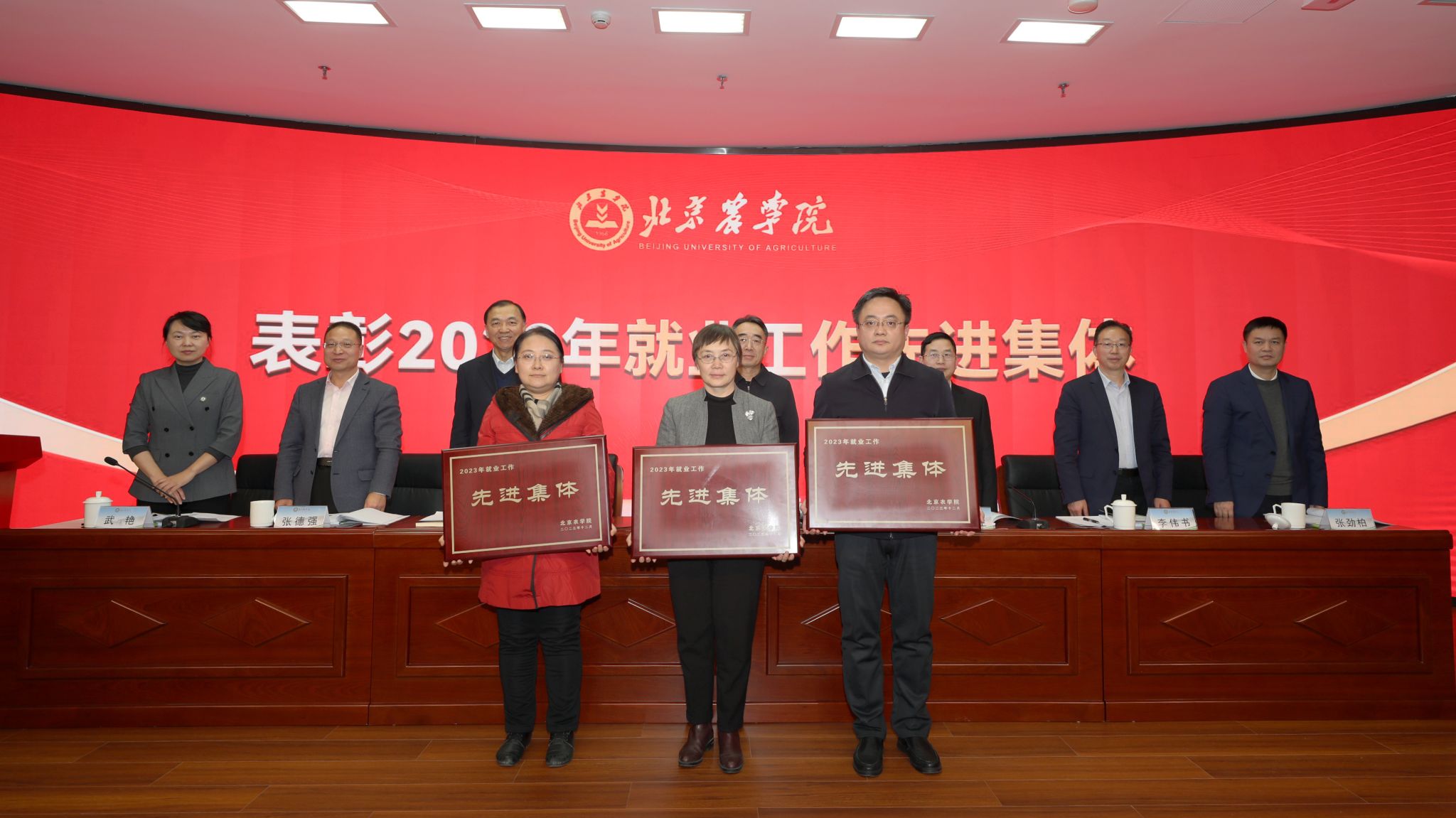 校黨委副書記仲叢生宣讀《關于表彰2023年就業工作先進集體的決定》。校領導為獲得表彰的先進集體頒獎。