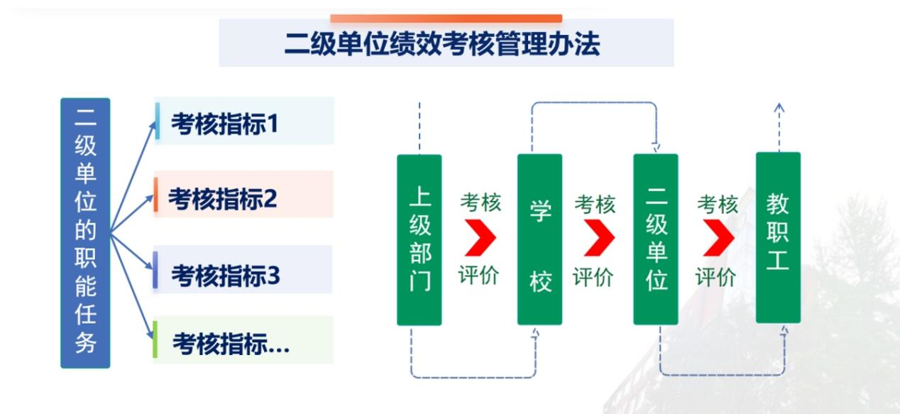 構(gòu)建教職工考核評(píng)價(jià)和二級(jí)單位績(jī)效考核并軌聯(lián)動(dòng)新機(jī)制。本次崗位聘任改革旨在構(gòu)建分類、分層、分崗的崗位考核評(píng)價(jià)體系,破解考核不嚴(yán)、考核不到位難題。為此,學(xué)校出臺(tái)教職工考核辦法,推行教師年度量化考核、非教學(xué)人員360度全方位考核,明確教職工崗位職責(zé)和聘期任務(wù),強(qiáng)化考核結(jié)果的運(yùn)用。本次崗位聘任后,全體教職工將與學(xué)校簽訂聘用合同,與聘用單位簽訂崗位聘期任務(wù)書(shū)。下一步,學(xué)校將出臺(tái)二級(jí)單位績(jī)效考核管理辦法,依據(jù)上級(jí)部門對(duì)學(xué)校的績(jī)效考核指標(biāo),結(jié)合各二級(jí)單位的職能和承擔(dān)的任務(wù),形成不同類別的考核評(píng)價(jià)指標(biāo),充分調(diào)動(dòng)發(fā)揮二級(jí)單位的主觀能動(dòng)性,鼓勵(lì)廣大教職工多干事、干成事,為學(xué)校高質(zhì)量發(fā)展作出更大貢獻(xiàn)。