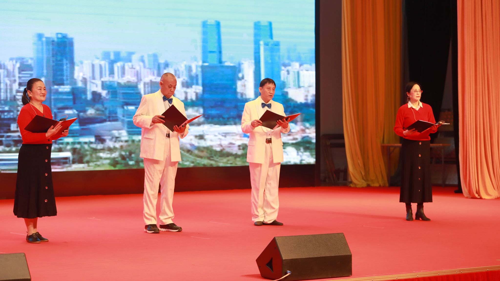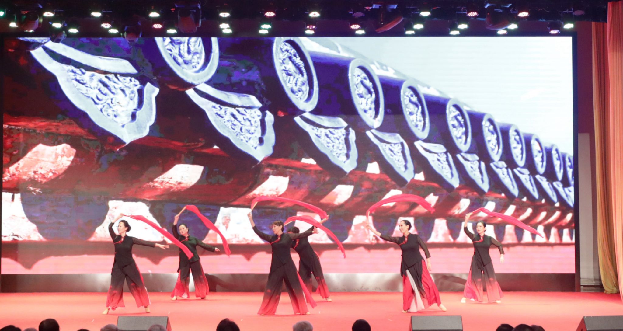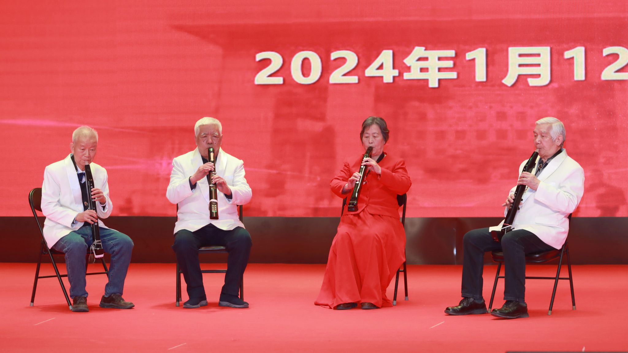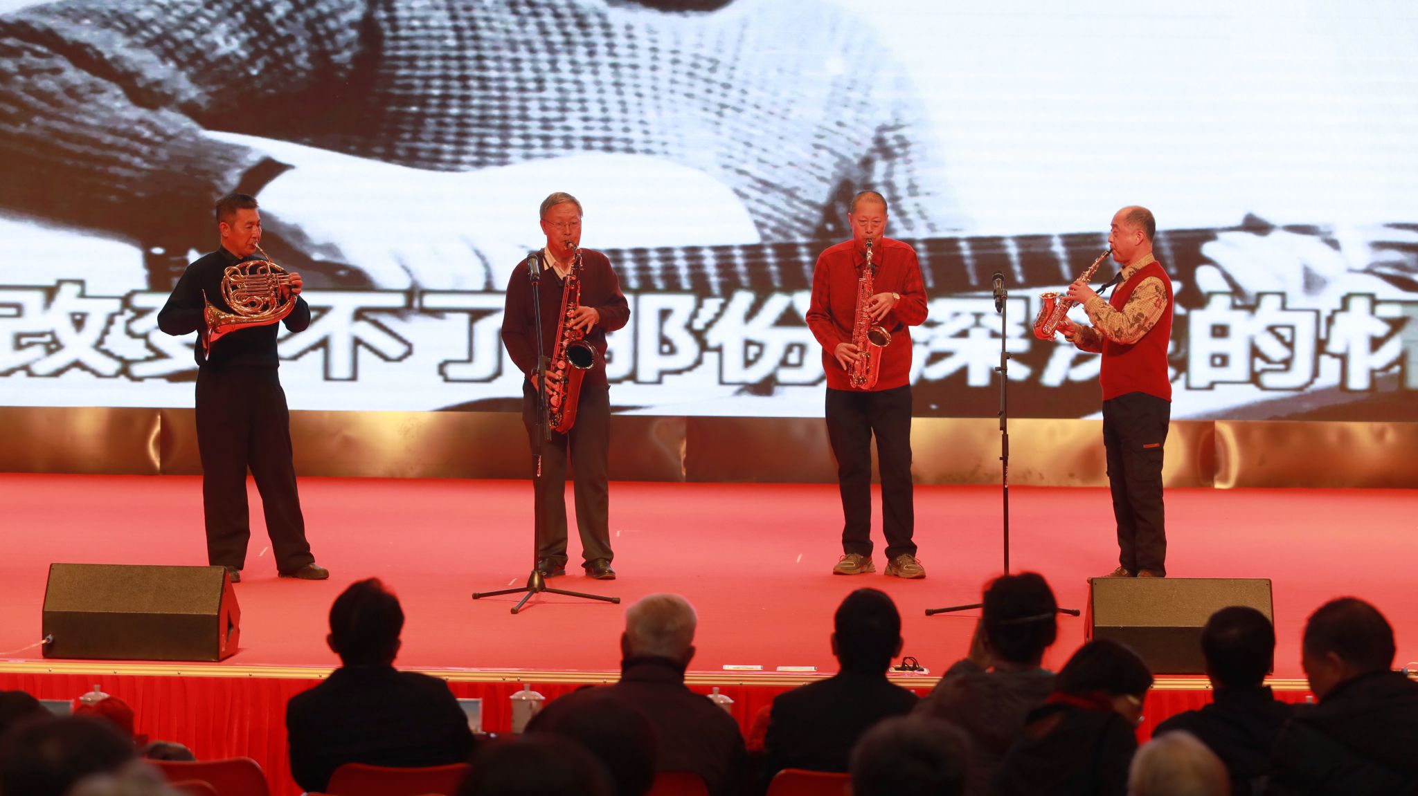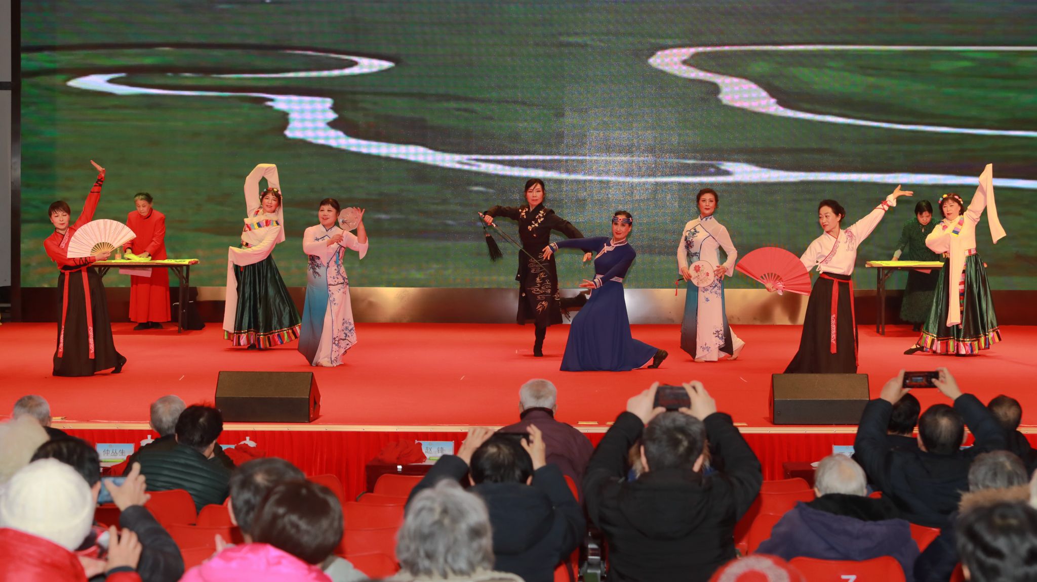 廣大離退休老同志送上了精心編排的喜迎新春文藝節(jié)目。“綠之夢”舞蹈團的《萬疆》用細膩的舞姿和大氣磅礴的氣勢充分演繹了祖國的寬廣胸懷和山河遼闊。“綠之夢”管樂團的一曲管樂合奏《深深的懷念》,以恢宏的氣勢烘托出聯(lián)歡會熱烈的氛圍。詩歌朗誦、合唱、古箏合奏、旗袍秀、電吹管合奏等節(jié)目,將老同志們熱愛生活、放歌新時代的精神面貌詮釋得淋漓盡致。《中國風(fēng)》將舞蹈的柔美與書法、國畫現(xiàn)場創(chuàng)作相結(jié)合,將中華文化的博大精深濃縮在咫尺之間的舞臺上。歌舞表演《初戀的地方》傾情訴說了青春的美好和時光的流逝。