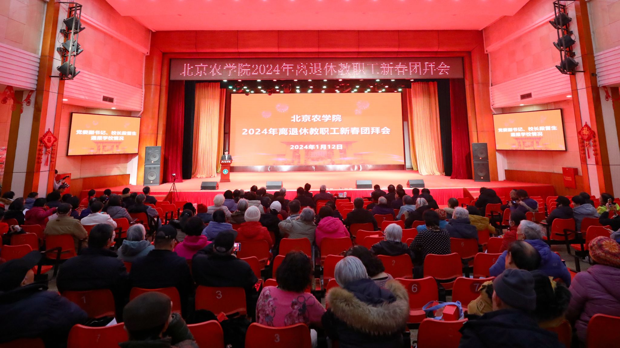 玉兔歡騰辭舊歲,金龍迎春啟新程。1月12日下午,學(xué)校在禮堂舉行2024年離退休教職工迎新春團拜會。黨委書記趙鋒,黨委副書記、院長段留生,黨委副書記仲叢生與離退休老領(lǐng)導(dǎo)、老同志代表歡聚一堂,共敘北農(nóng)情懷,共迎新春佳節(jié)。