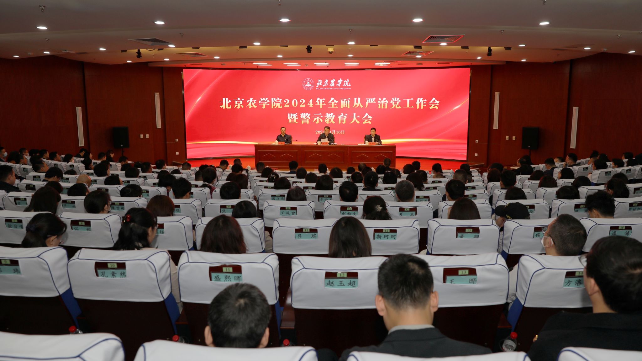 4月16日,學校召開2024年全面從嚴治黨工作會暨警示教育大會,深入學習貫徹習近平總書記在二十屆中央紀委三次全會上的重要講話和全會精神,貫徹落實中央、教育部黨組和北京市委、市委教育工委關于全面從嚴治黨的決策部署和要求,縱深推進學校全面從嚴治黨工作,為落實立德樹人根本任務、推動學校事業高質量發展提供堅強政治保證。黨委書記趙鋒以《以首善標準開展黨紀學習教育 堅定不移推動全面從嚴治黨向縱深發展 為都市農林特色高水平應用型大學建設提供堅強保障》為題講授黨紀學習教育專題黨課。會議由黨委副書記、院長段留生主持。