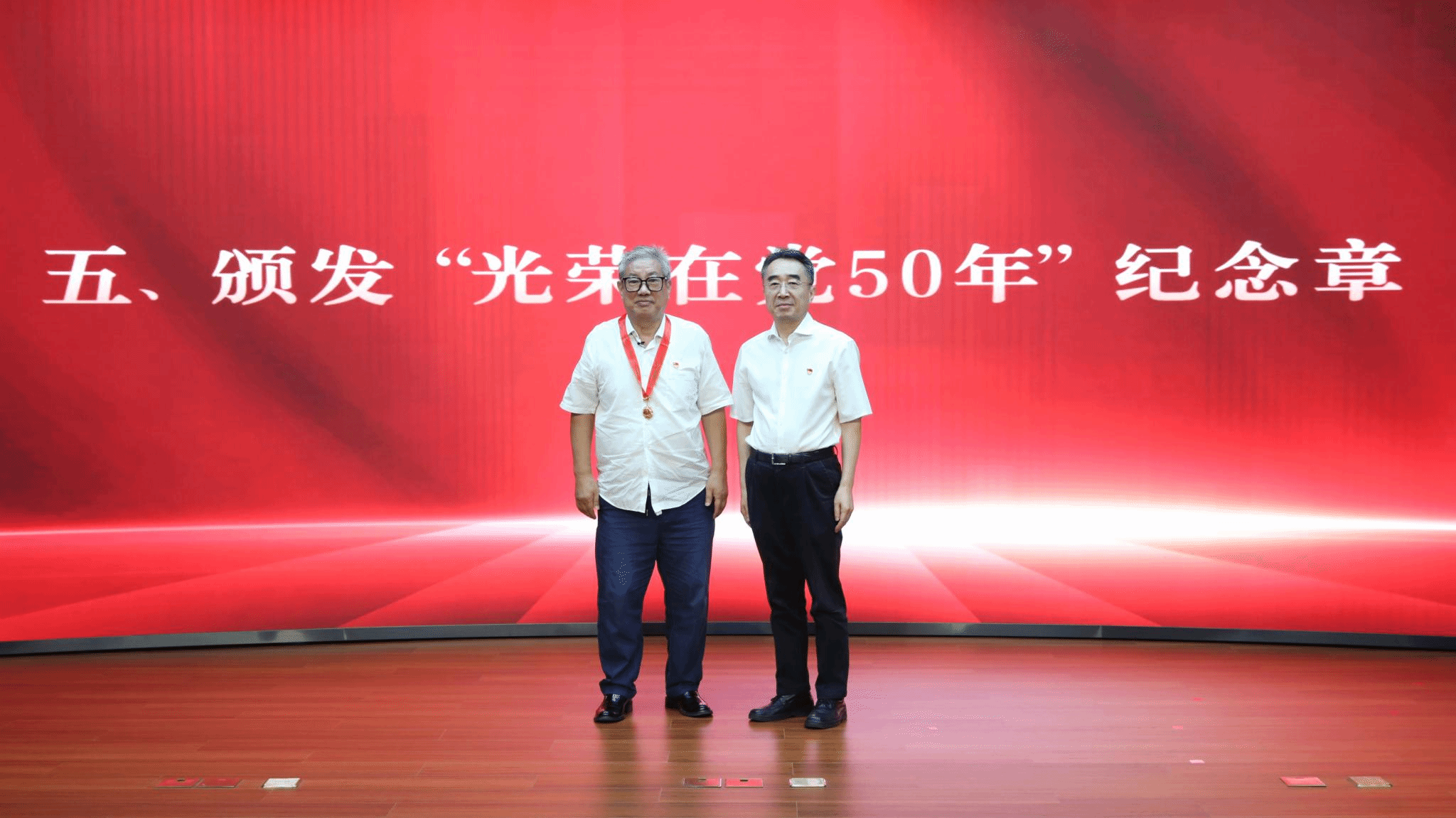 趙鋒為“光榮在黨50年”老黨員朱生利頒發紀念章。
