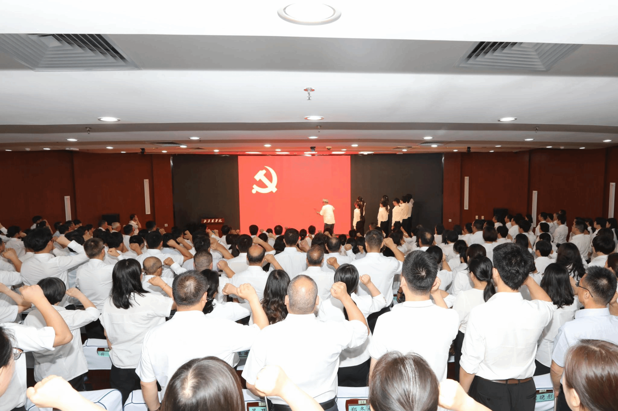 朱生利帶領新黨員入黨宣誓、老黨員重溫入黨誓詞。