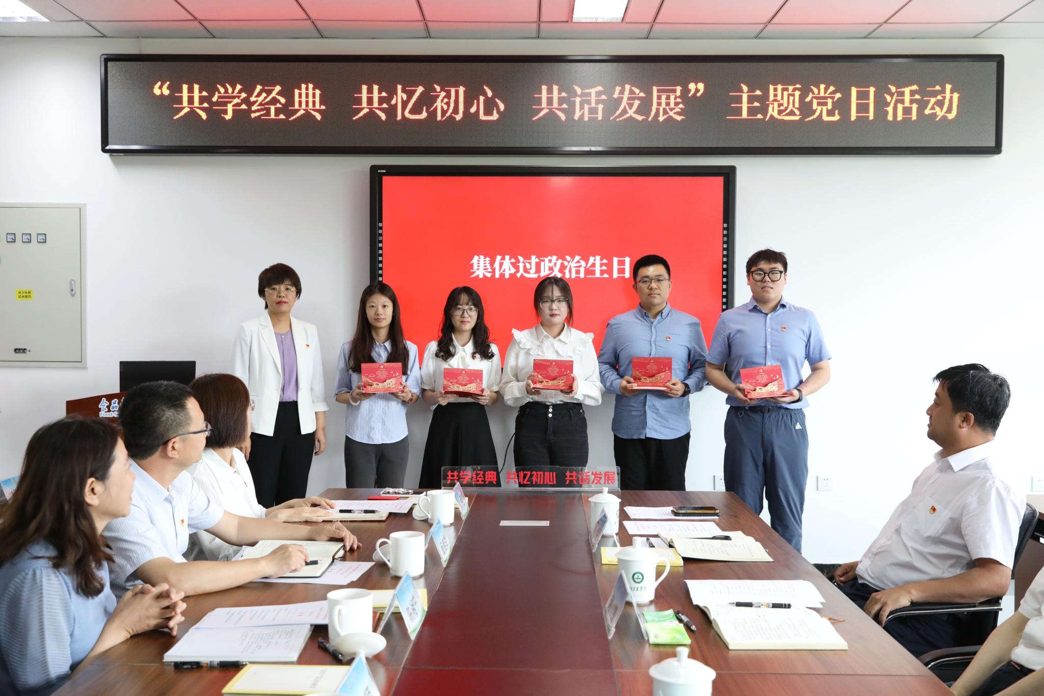 趙鋒為師生黨員代表發(fā)放“政治生日”卡,師生黨員集體過“政治生日”,重溫入黨誓詞。