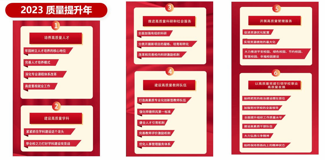 學校大力加強作風建設,以優良作風推動高質量發展。面對歷史遺留問題、現實難題和群眾反映強烈的問題,學校黨委以“轉作風、擔使命、抓落實、促發展”為主題,將2022年確定為“作風建設年”,全面加強干部作風、師德師風、教風學風,大力樹正氣、樹榜樣、樹典型,整治不作為、慢作為、亂作為,取得了突出成效。在“作風建設年”基礎上,我們牢牢把握高質量發展這個新時代的硬道理,以“深化作風建設,推動高質量發展”為主題,將2023年確定為“質量提升年”,全力推動學校發展進入“快車道”。今年我們又以“狠抓工作落實,推動高質量發展”為主題,將2024年確定“工作落實年”,在全校上下迅速形成了真抓實干、力求實效的良好氛圍。近年來,學校風清氣正、干事創業、擔當作為的氛圍更加濃厚,人心思齊、人心思進、人心思干的勢頭明顯增強。