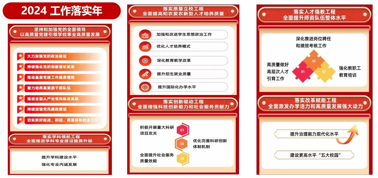 學校自2023年9月勝利召開第四次黨代會以來,全體北農人在黨委堅強領導下,聚焦落實立德樹人根本任務,勇擔強農興農時代使命,凝心聚力推動高質量黨建引領學校事業高質量發展不斷邁出新步伐、取得新成效。學校黨委書記趙鋒表示:“學校將在市委市政府堅強領導下,以黨紀學習教育為契機,以‘工作落實年’為抓手,大力弘揚不折不扣抓落實、雷厲風行抓落實、求真務實抓落實、敢作善為抓落實的優良作風,團結帶領廣大師生把論文寫在京華大地上、把成果凝結在農民收獲里,努力在服務新時代首都發展和全面推進鄉村振興的進程中想在前、干在前、走在前,當先鋒、作表率,以更加優異的成績迎接和慶祝黨的生日,以實際行動回答好‘強國建設、北農何為’這一重要時代課題。”