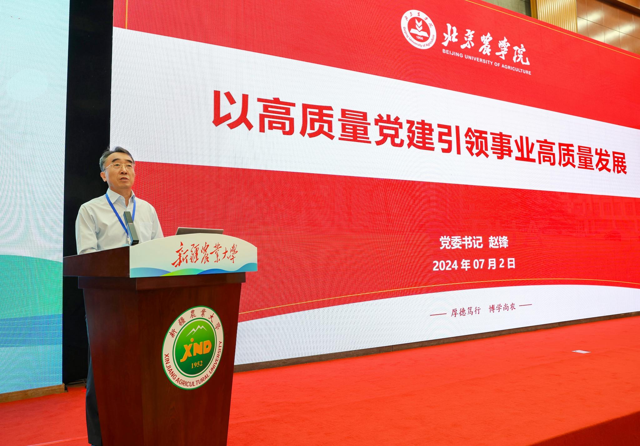 7月2日,全國高等農(nóng)林水院校黨建與思想政治工作研討會第21次會議在新疆農(nóng)業(yè)大學召開。來自全國41所農(nóng)林水院校的黨委書記、黨委副書記及相關(guān)部門負責人等151位代表圍繞“堅持黨的全面領(lǐng)導,用習近平新時代中國特色社會主義思想鑄魂育人,推動鑄牢中華民族共同體意識,以高質(zhì)量黨建引領(lǐng)農(nóng)林水院校事業(yè)全面發(fā)展,構(gòu)建落實立德樹人根本任務(wù)新生態(tài)新格局”主題進行交流研討。我校黨委書記趙鋒參加會議并作《高質(zhì)量黨建引領(lǐng)事業(yè)高質(zhì)量發(fā)展》主題發(fā)言。