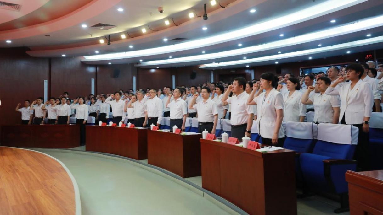 夏奎武帶領新黨員入黨宣誓、老黨員重溫入黨誓詞。