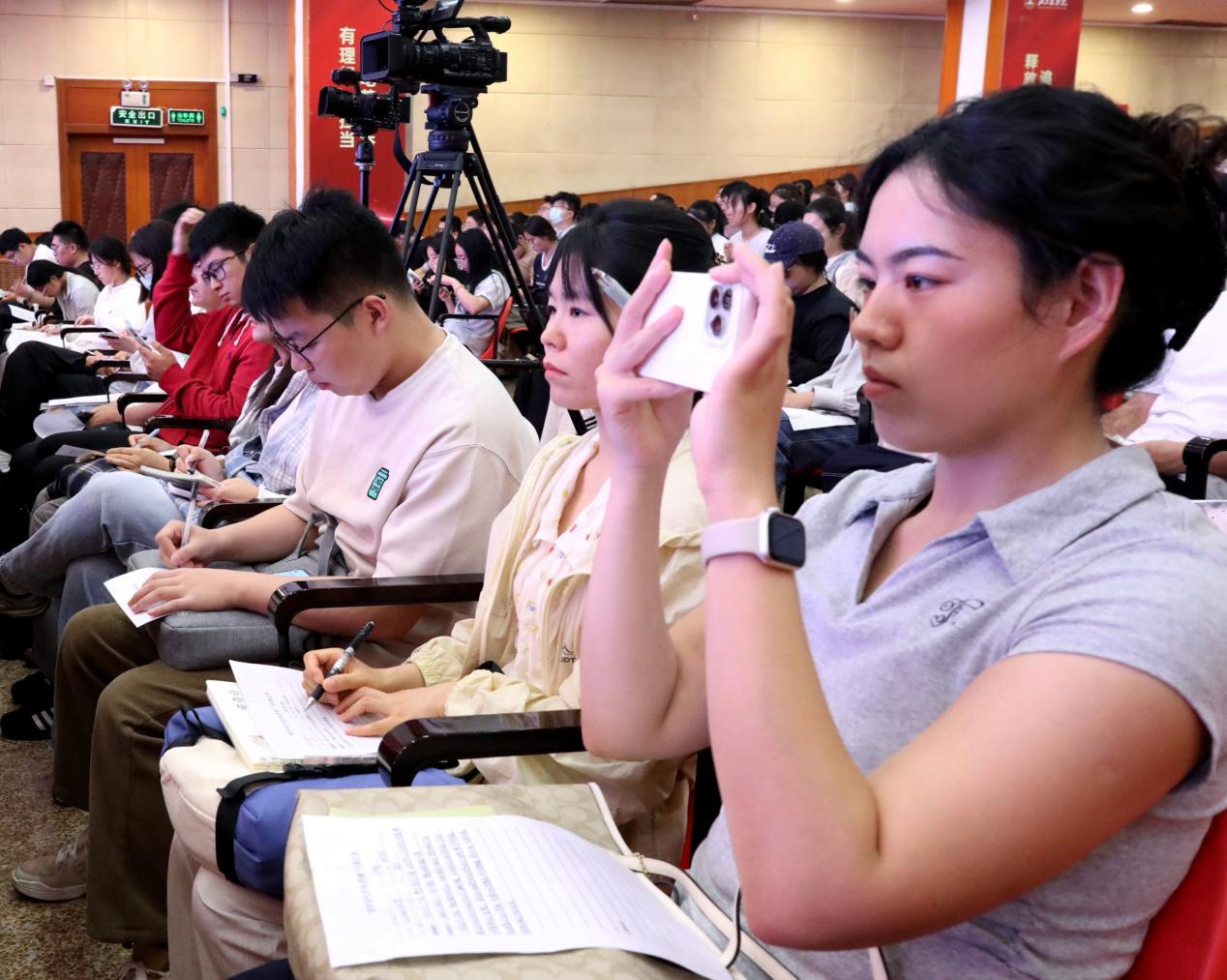 段留生介紹了學校的發展歷程、辦學定位、學科專業特色、人才培養模式等。他指出,近年來,學校深化研究生分類培養改革,不斷提高教師科研育人能力,大力推進國際合作與交流,學生科技創新能力顯著提升。希望同學們樹立遠大志向,以研促學、創新為要,爭做有理想、敢擔當、能吃苦、肯奮斗的新時代好青年,在強國建設、民族復興征程上書寫青春華章。