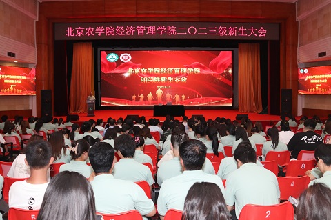 2023年9月13日,經(jīng)濟(jì)管理學(xué)院召開2023級(jí)新生大會(huì)。北京市農(nóng)業(yè)農(nóng)村局一級(jí)巡視員馬榮才,北京農(nóng)學(xué)院黨委副書記、院長(zhǎng)段留生,北京農(nóng)學(xué)院研究生處處長(zhǎng)何忠偉,經(jīng)濟(jì)管理學(xué)院全體教職工和2023級(jí)本科、研究生376名新同學(xué)參加大會(huì)。會(huì)議由經(jīng)濟(jì)管理學(xué)院黨委書記王萬山主持。