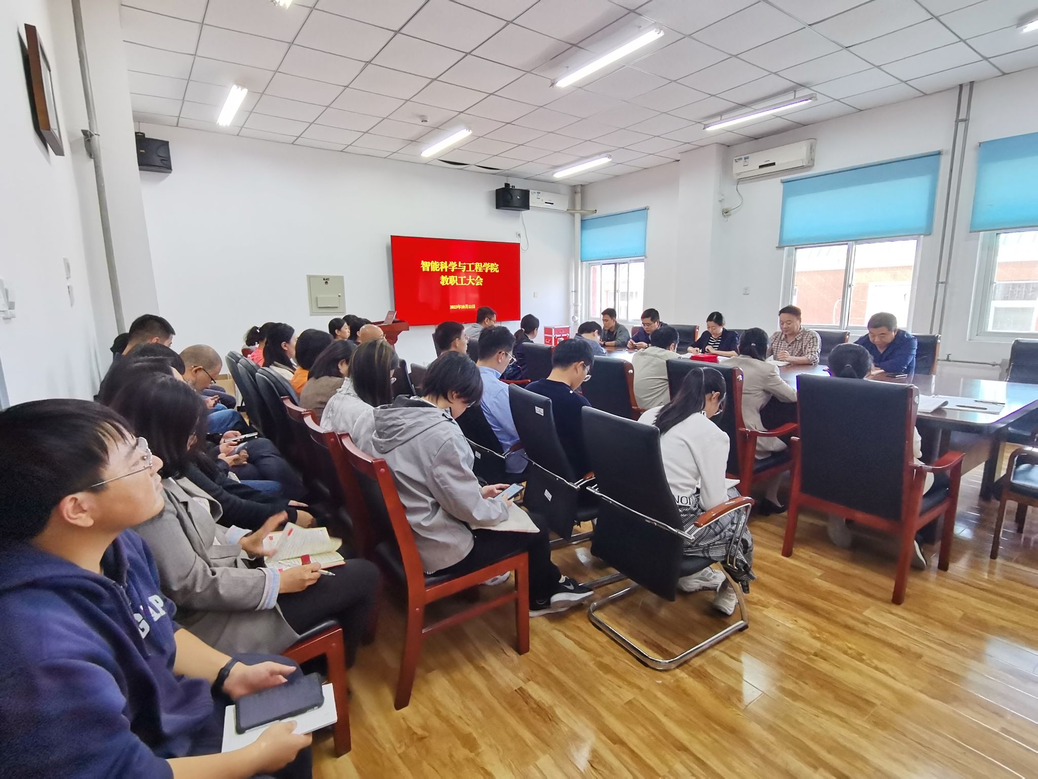 為深入學習貫徹落實學校第四次黨代會精神,2023年10月11日下午,智能科學與工程學院召開全體教職工大會。會議由學院黨總支副書記、院長韓寶平主持。學院全體教職工參加會議。