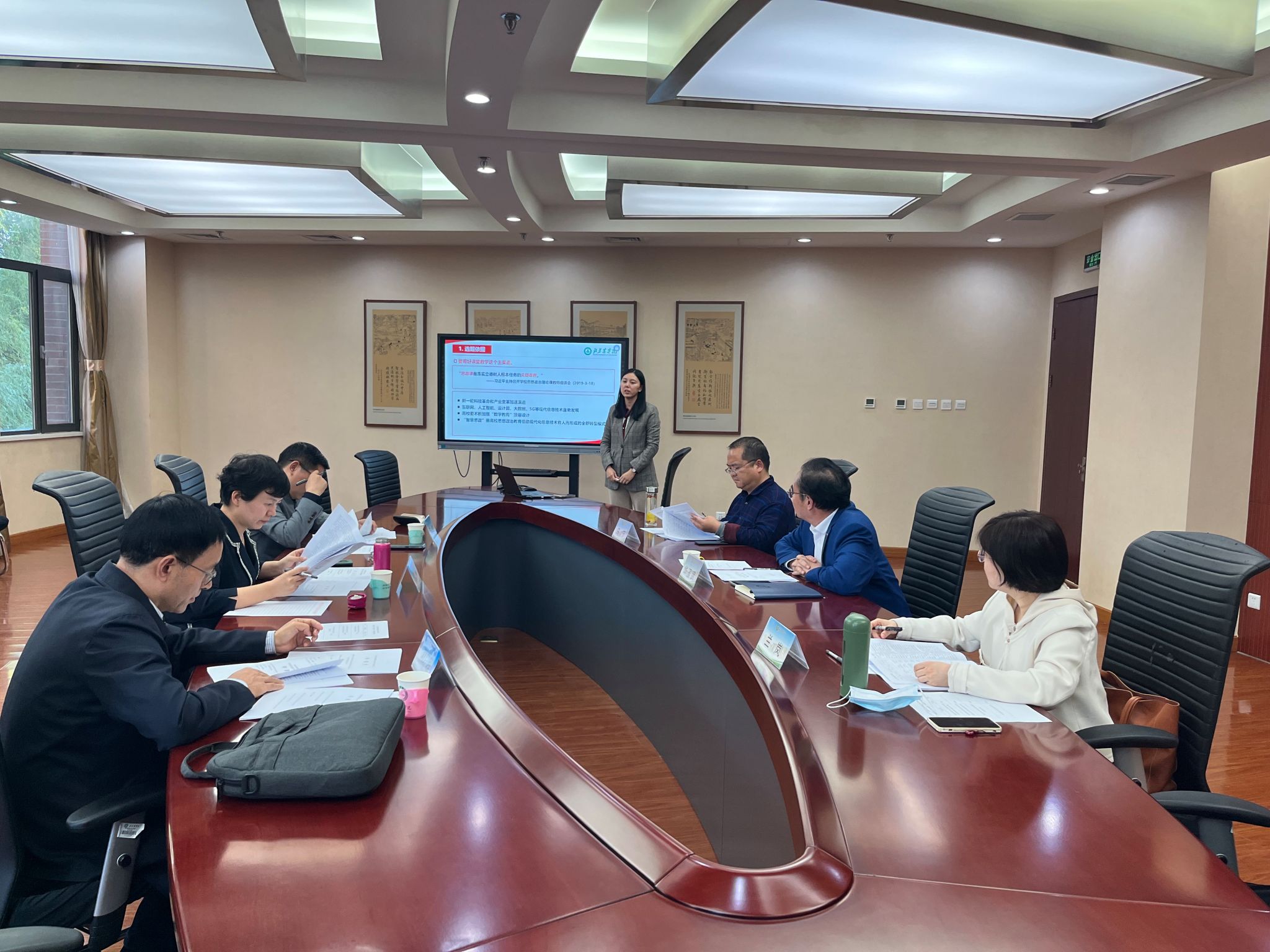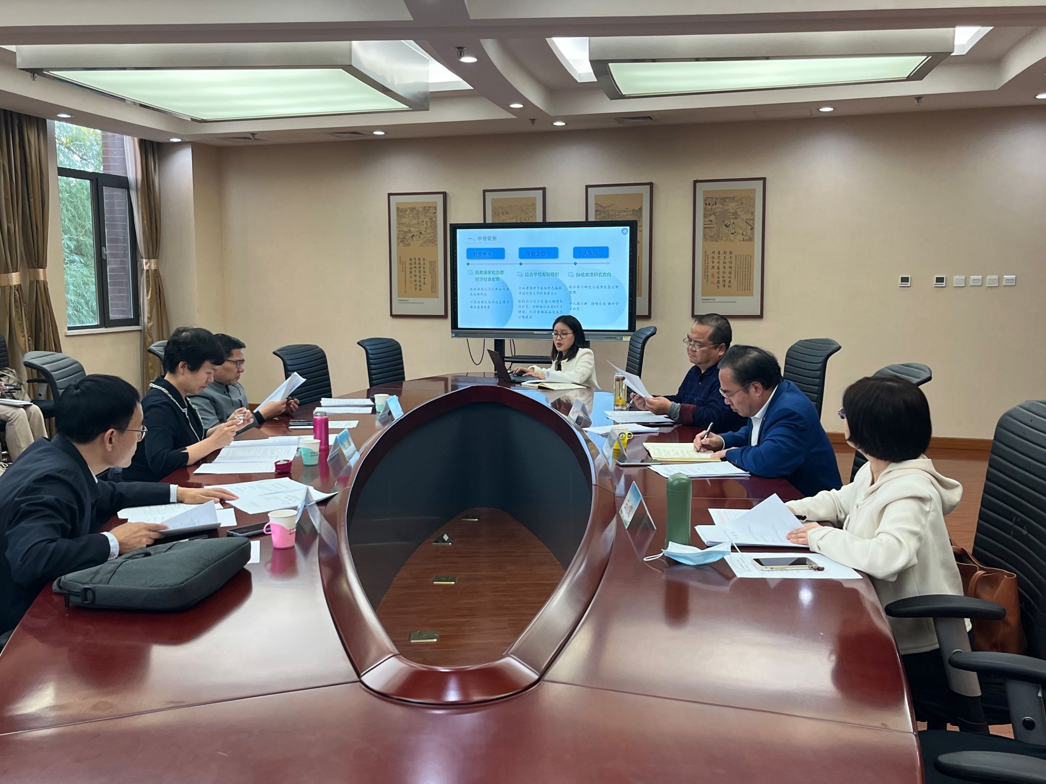 本次評審會邀請中國農業大學馬克思主義學院院長張暉,華北電力大學馬克思主義學院院長王偉,北京林業大學馬克思主義院長劉廣超擔任校外專家評審。學院學術委員會部分教師參加評審,華玉武院長主持會議。