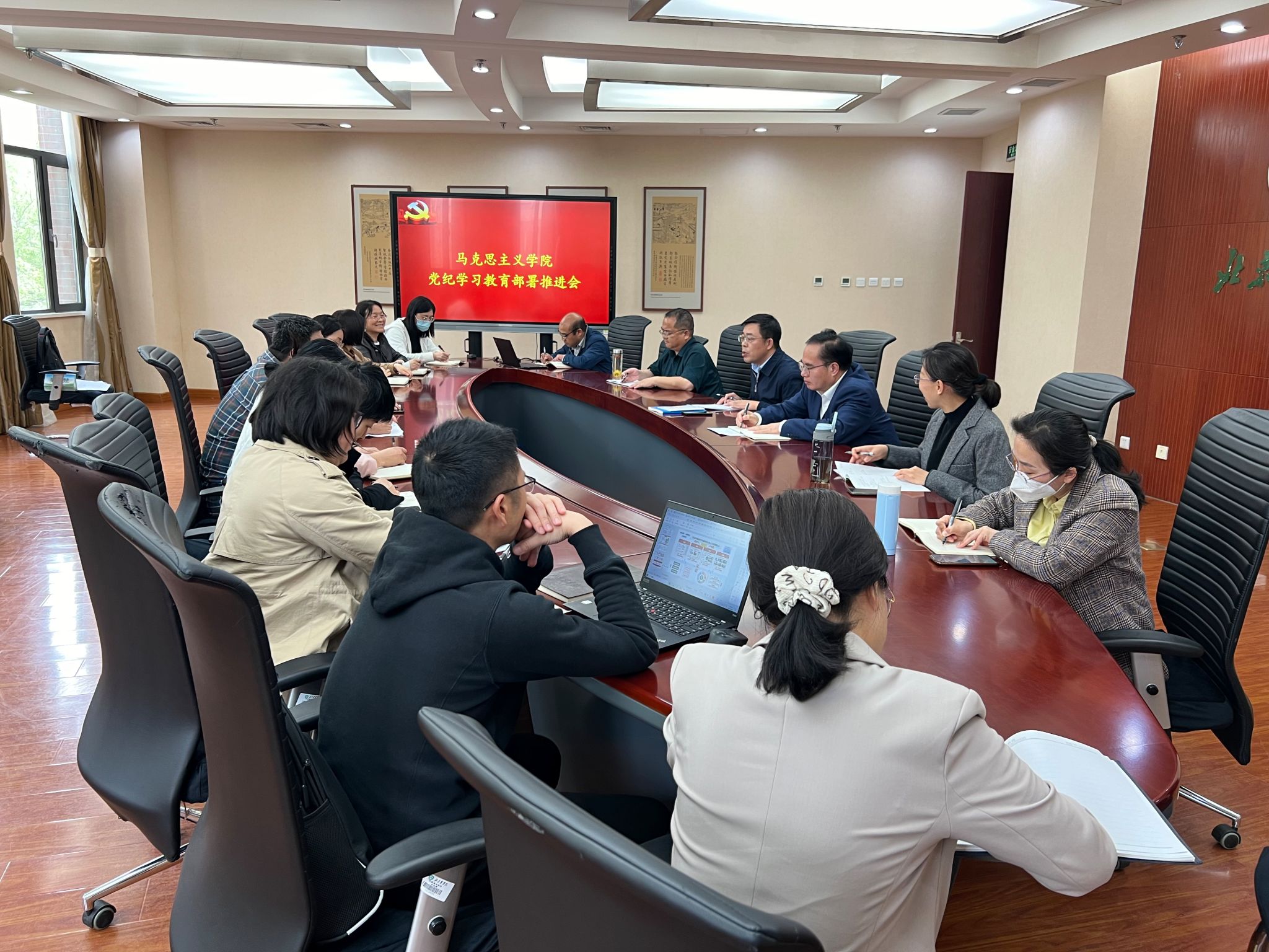按照學校黨委統一部署和要求,4月12日下午,馬克思主義學院直屬黨支部召開全體黨員會議,對黨紀學習教育進行動員部署和推進落實。會議由直屬黨支部書記高建偉主持。