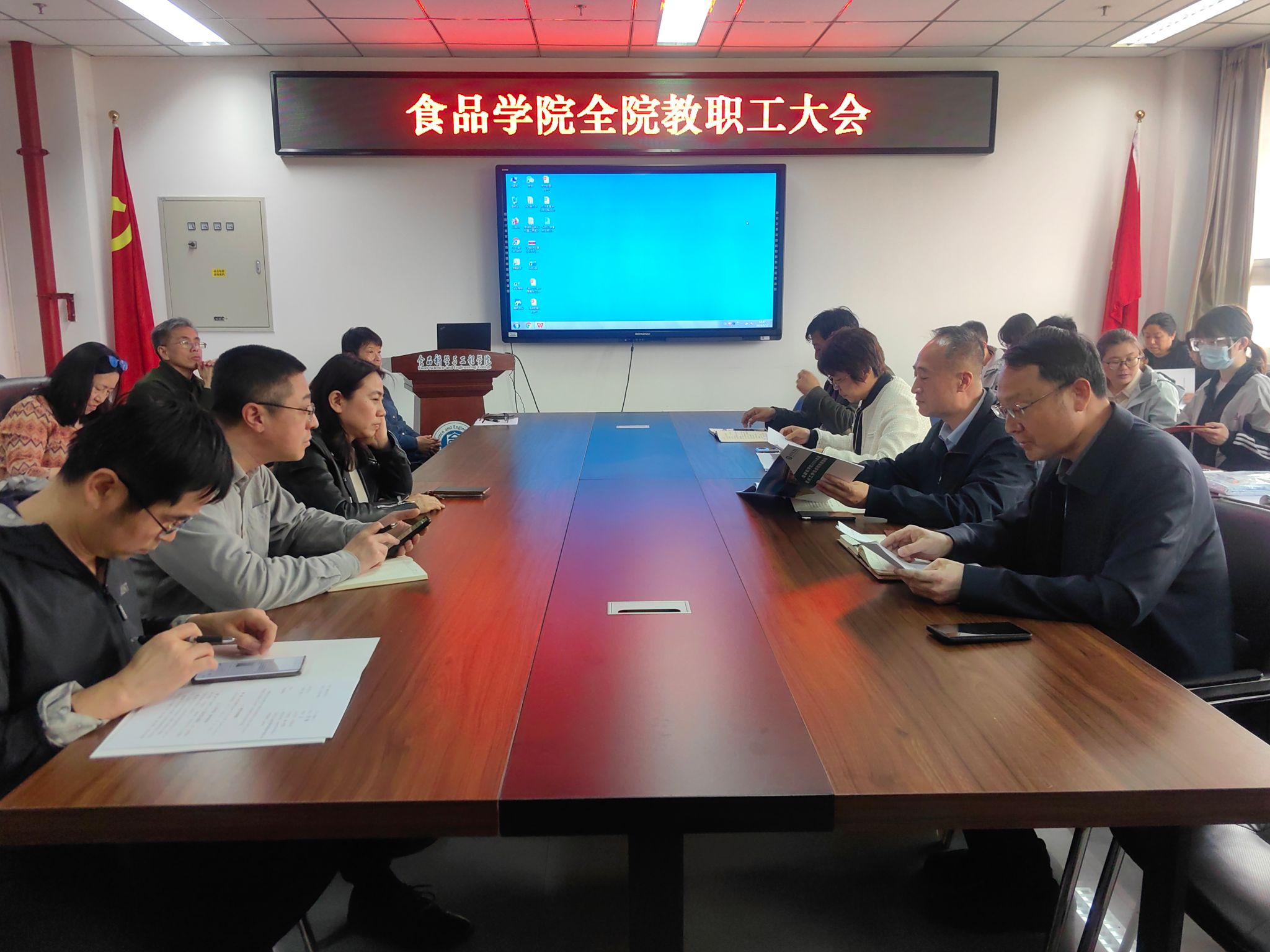 2024年4月12日,食品科學與工程學院召開全體教職工大會,部署動員開展黨紀學習教育,推進全年重點工作。會議由學院黨委書記靳曉熙主持。