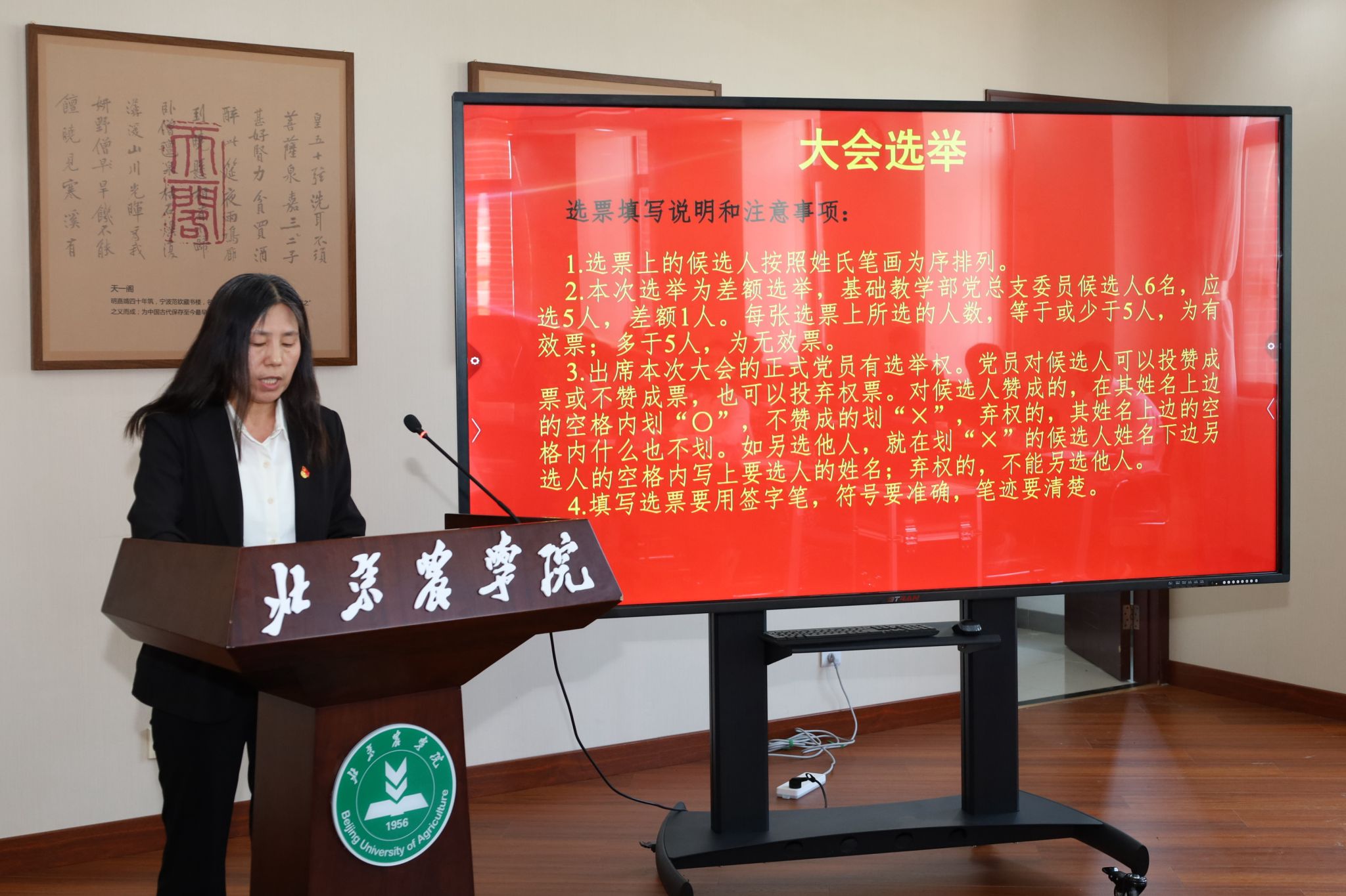 大會選舉由總監票人梁宏英同志主持。選舉產生了新一屆中共北京農學院基礎教學部黨總支委員會。