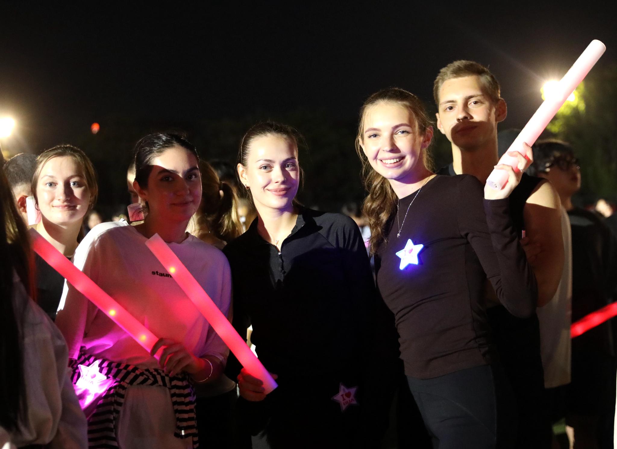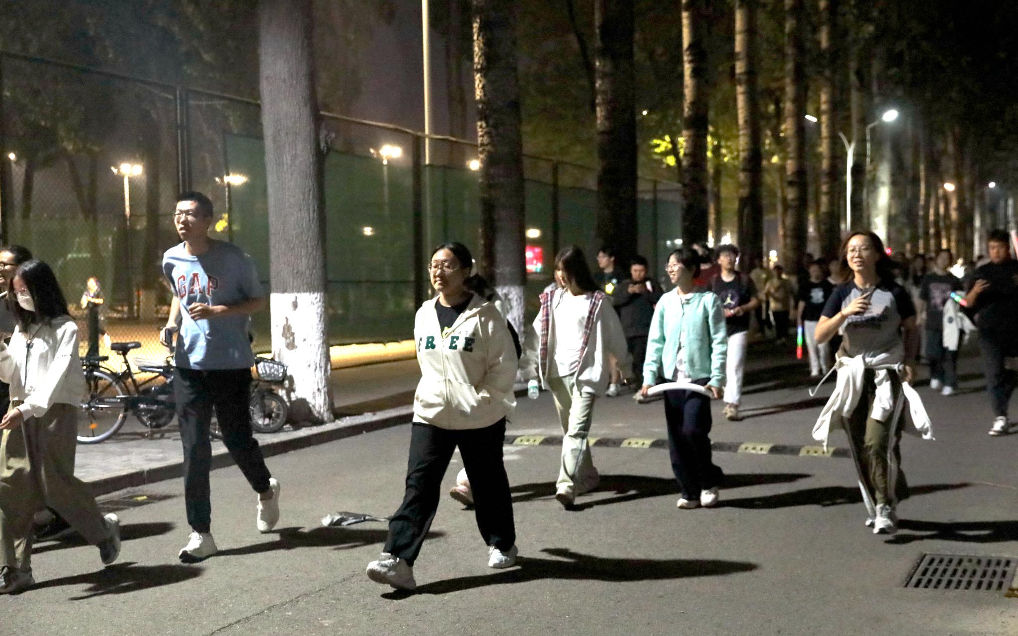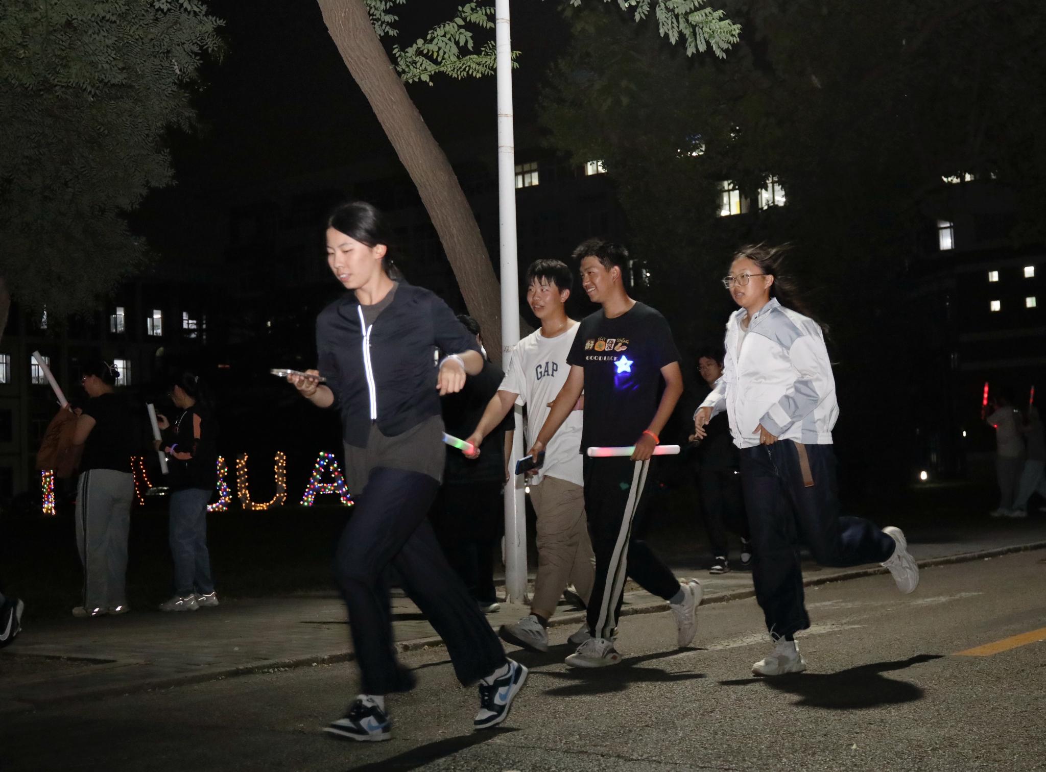 發令聲響后,手持熒光道具的師生們有序出發,沿既定路線奔跑,在夜色中連成閃亮的流動隊列。夜跑路線沿途設置9個學院主題打卡點,師生們紛紛駐足打卡、合影留念,記錄下奔跑中的青春瞬間。