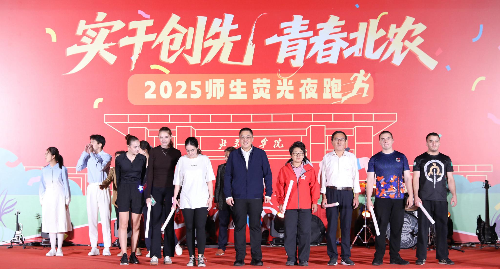 9月24日晚,學校舉行“實干創先 青春北農”師生熒光夜跑活動。校黨委副書記鄭品石為參跑師生發令,校友代表、全國勞動模范宋麗新,平谷校友站副站長王春青,參與中國人民抗日戰爭暨世界反法西斯戰爭勝利80周年紀念大會廣場合唱師生,運動員、教師、留學生代表領跑,4000余名師生參與活動,以鏗鏘步伐和昂揚精氣神為新中國76周年華誕獻禮。