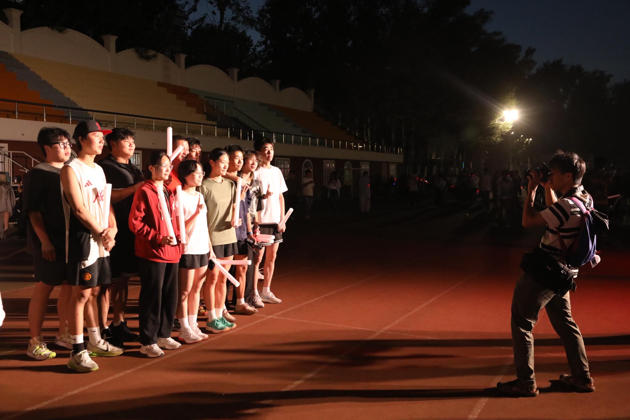 夜跑結束后,師生們手持國旗與校旗有序集結到操場,伴隨悠揚的音樂旋律齊聲歌唱,用嘹亮的歌聲為祖國76周年華誕送上誠摯祝福。旗幟在夜空中飄揚,歌聲在校園里回蕩,師生們的臉上洋溢著自豪與期待,將愛國愛校的情懷融入這溫馨而莊重的時刻。