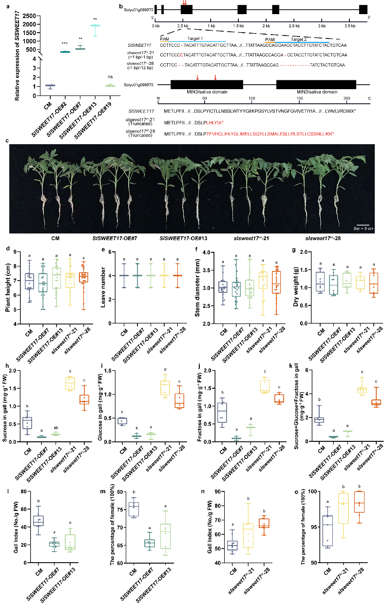 圖1. SlSWEET17負調(diào)控番茄對根結(jié)線蟲的敏感性