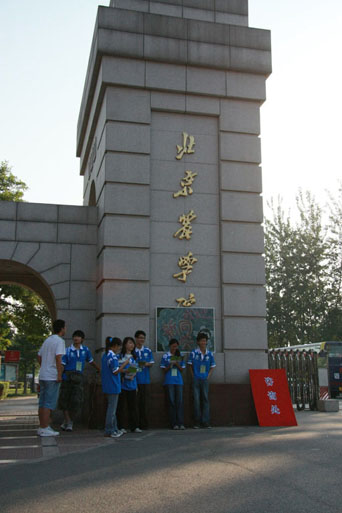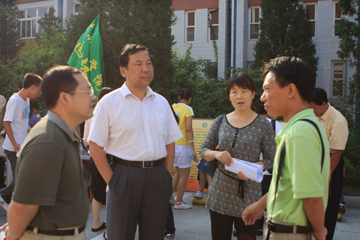 9月4號早晨,我校2008級本專科學生陸續來校報到。校門前樹立“北京農學院熱烈歡迎新同學”的拱門引人注目,學校的志愿者穿上了統一的服裝,熱情地為每一個新同學提供咨詢與服務。校園內彩旗飛揚,保安人員指揮著來往車輛,保證交通暢通。黨委書記王慧敏,院長王有年,黨委副書記羅維忠、王曉霞,副院長杜曉林、姚允聰,紀委書記朱生利先后到報到處看望新生并了解了新生報到工作。