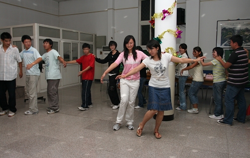 在聯歡會上,各少數民族同學載歌載舞,喜迎中秋。彝族同學表演了民族舞蹈《阿詩且》,舞步歡快活潑;全體少數民族同學演唱了歌曲《水調歌頭·明月幾時有》,歌聲優美動聽;藏族姑娘趙淼則帶大家跳起了藏民族傳統的鍋莊舞,大家沉浸在歡樂的海洋之中,全場氣氛達到高潮。
