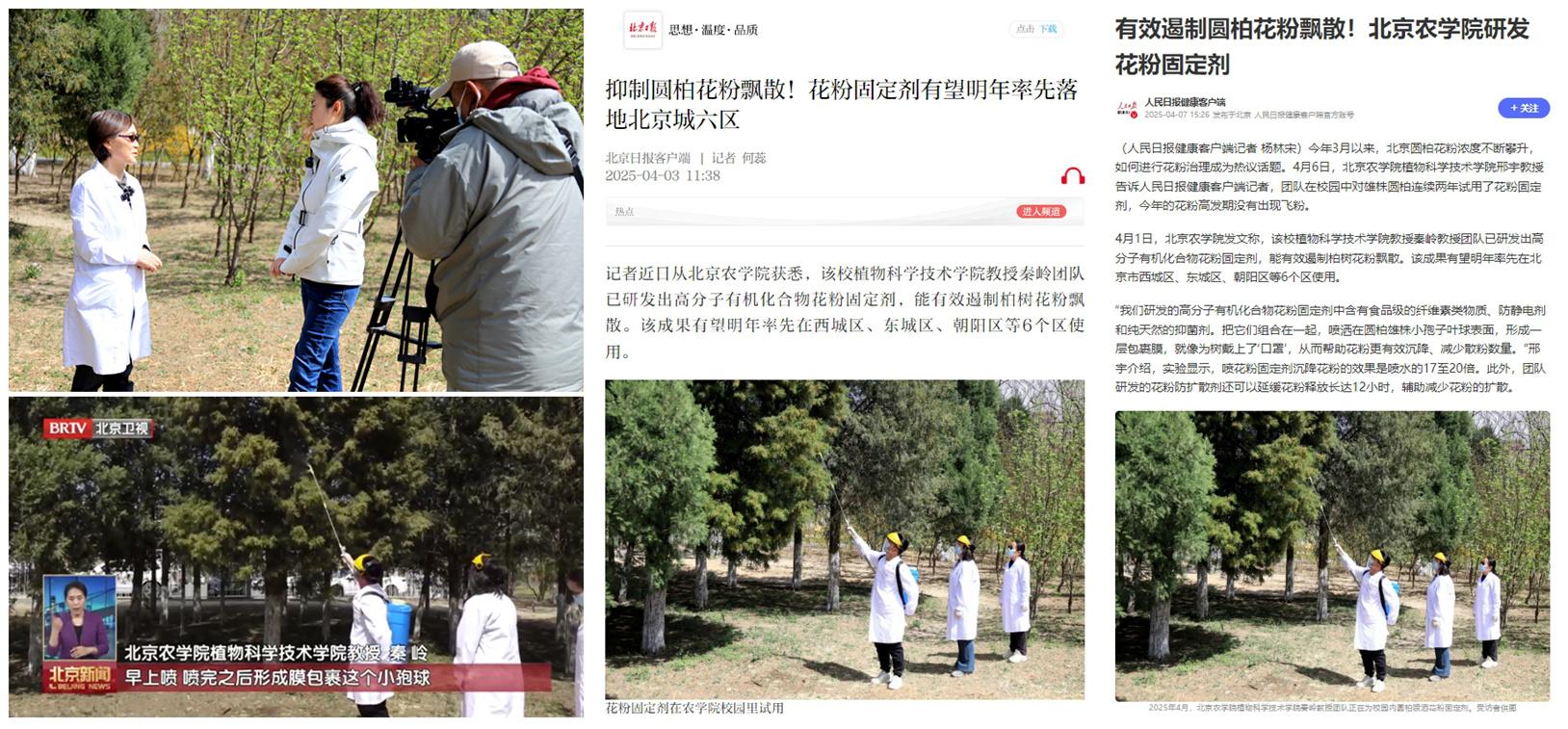 今年春天,圓柏花粉頻頻沖上熱搜,北京有圓柏雄株兩百多萬棵,為了有效減輕圓柏花粉給市民生活帶來的困擾,我校秦嶺教授團隊圍繞遏制柏樹花粉飄散進行了科技攻關,目前已取得較好成效。人民日報健康客戶端、光明網、北京電視臺、北京日報、新京報等20多家媒體對此進行了報道。