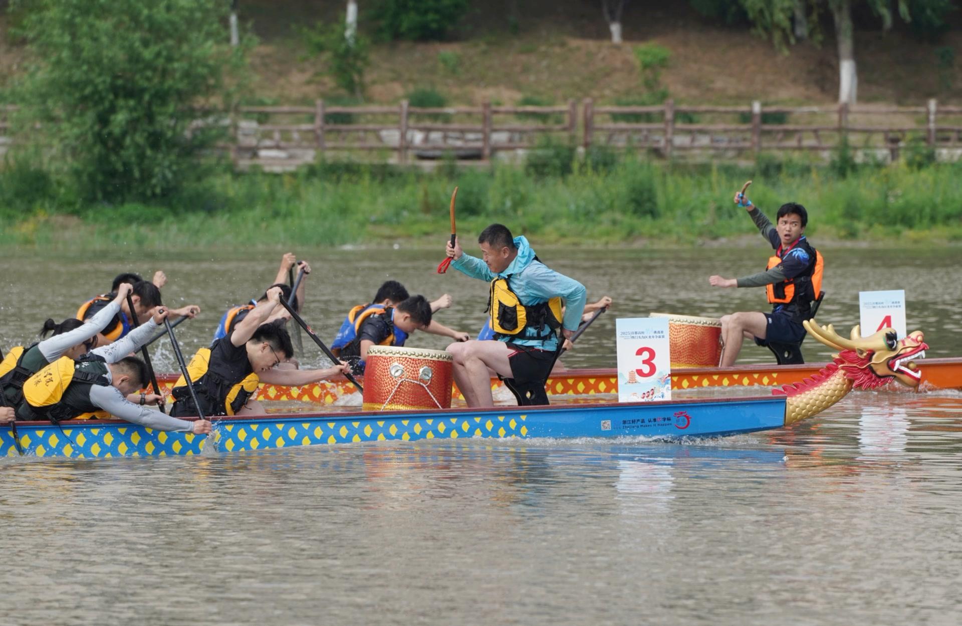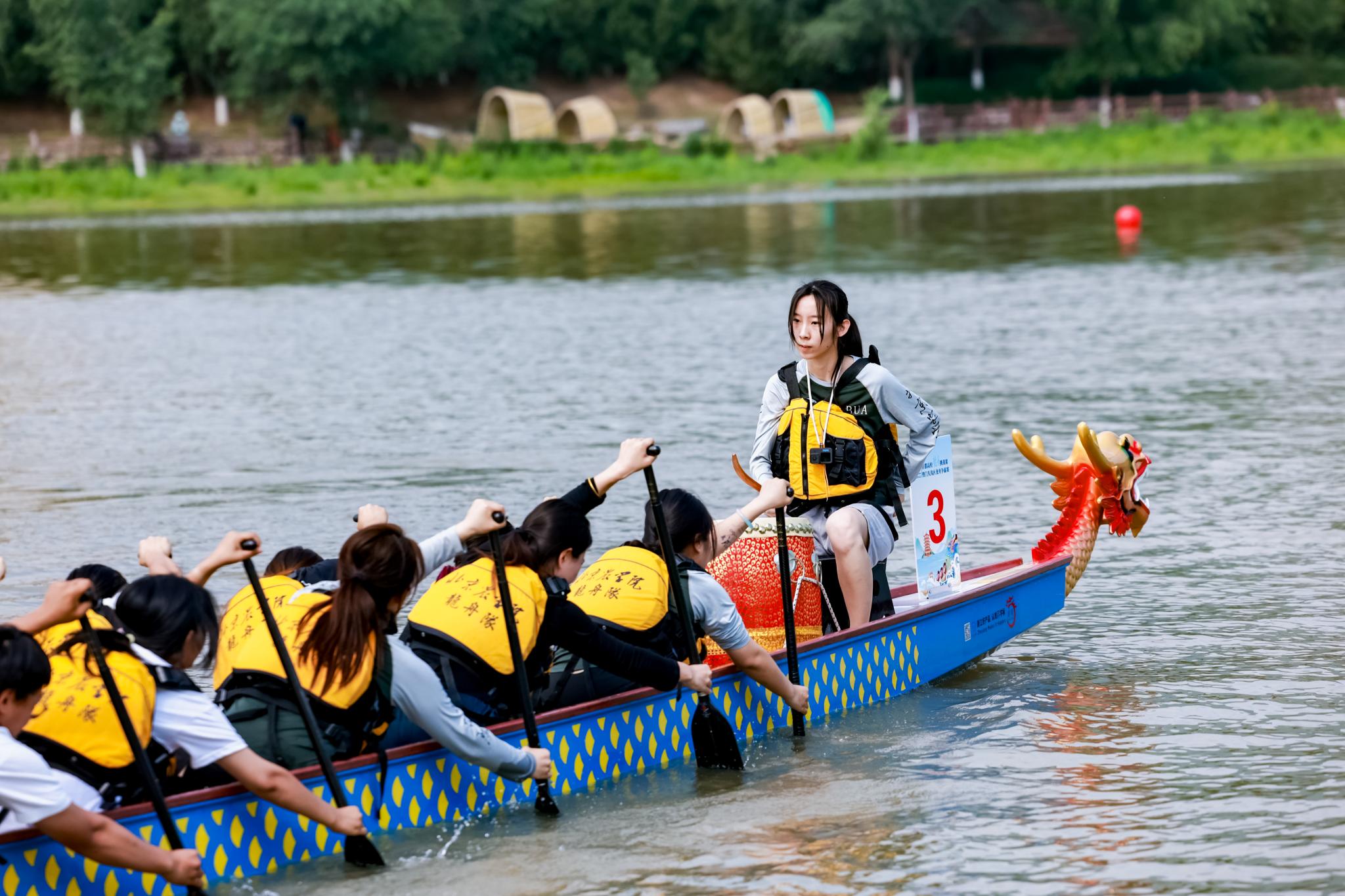 端午節前夕,我校龍舟隊在門頭溝區門城湖水域參加了2025年首都高校龍舟挑戰賽暨門頭溝區龍舟爭霸賽,與來自北京大學、北京體育大學、南開大學等12所高校的18支隊伍以及10支大眾隊伍同場競技,以昂揚的斗志和卓越的表現獲得高校組第八名。