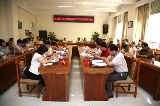 會(huì)議傳達(dá)了學(xué)校有關(guān)文件精神。根據(jù)《關(guān)于進(jìn)一步加強(qiáng)思想政治理論課教師隊(duì)伍建設(shè)的實(shí)施意見》(委發(fā)〔2009〕16號(hào) 、院發(fā)〔2009〕27號(hào) )的精神和要求,學(xué)校黨委決定成立思想政治理論課教學(xué)科研部,該機(jī)構(gòu)為隸屬于學(xué)校的二級(jí)機(jī)構(gòu),與人文社科系合署辦公。