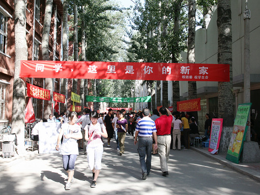 9時許,入學通道上已是熱鬧非凡,許多家長在各院系注冊登記處已經(jīng)排上了長隊,新生們欣喜激動的笑臉讓整個校園生意盎然。各院系注冊地點橫幅招展,“新起點,新目標,北農(nóng)祝您再創(chuàng)輝煌”的標語讓新生對新學期充滿期待,大批志愿者也已經(jīng)熱心的投入到為新生服務的工作中。