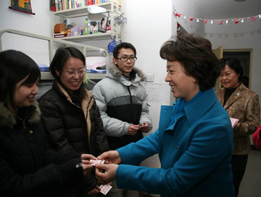 今年是他們上大學以來第一次回家過年,這段時間,他們正在為買不到回家的車票而頭疼。“這下好,我可以安心回家了。感謝學校,感謝校領導。”來自四川汶川縣的趙穎在從黨委書記王慧敏手中接到車票和補助費的那一刻激動地說。她說,她花了好長時間去排隊買票都沒買到,親切體會到了一票難求的滋味。正在為回不了家發愁的她,沒想到學校已經為他們買好了車票。校領導還在百忙之中親自把票送到她手中。