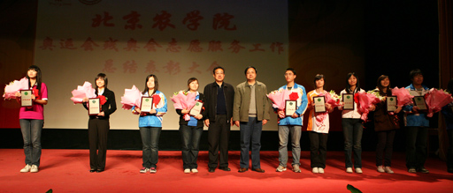 院長王有年宣讀了《關于表彰北京農學院奧運會、殘奧會志愿者服務工作先進集體、先進個人和優秀志愿者的決定》。授予后勤集團等8個單位“北京農學院奧運志愿服務工作先進集體”榮譽稱號;授予韓寶國等49名同志“北京農學院志愿服務工作先進個人”榮譽稱號;授予郭麗霞等150名同學“北京農學院奧運志愿服務工作優秀志愿者”榮譽稱號。