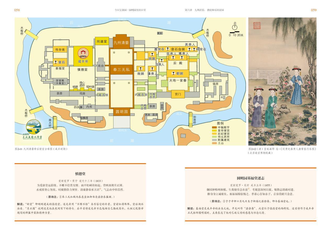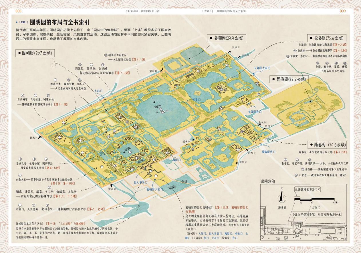 全書以7萬字、130張插圖構(gòu)建起了一座“紙上圓明園”,通過背景篇、居園篇、理政篇、豫游篇、經(jīng)營篇和別園等6大篇章,以及“圓明園歷史圖軸”“圓明園的世界影響”“圓明園的皇家節(jié)令游賞”等6個專題,生動還原了這座皇家園林日常的“居園理政”活動與背后深刻的文化內(nèi)涵。它通過“重返歷史現(xiàn)場”的筆觸,帶領(lǐng)讀者回憶圓明園里理政、燕寢、賞游、管理的日常,從園林風(fēng)景中解讀帝王與家人的溫情、對自然的向往、對創(chuàng)作的熱情、對文化的自信、對國家的憂患等諸多情感。
