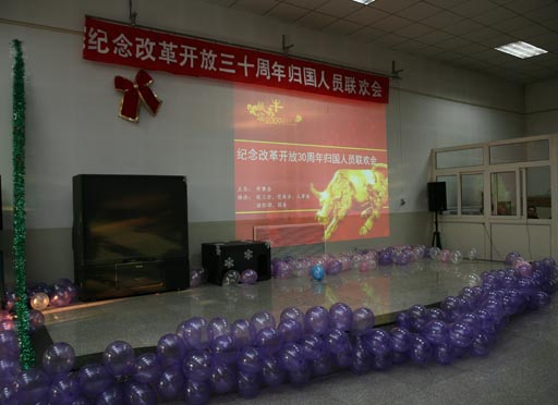 下午,由我校外事辦主辦,人事處、統戰部、工會、宣傳部和歌詠協會協辦,舉行了一場別開生面的“北京農學院慶祝改革開放三十周年歸國人員座談會暨聯歡會”。
