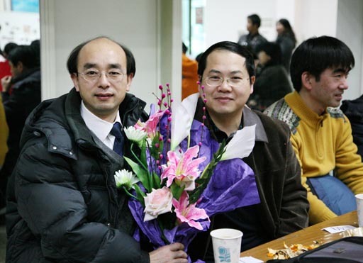 下午三點,“北京農學院慶祝改革開放三十周年歸國人員聯歡會”的帷幕,在一片歡聲笑語和優美音樂的交織聲里,歡快地拉開了。黨委副書記羅維忠和高喜軍也加入到聯歡的隊伍中。
