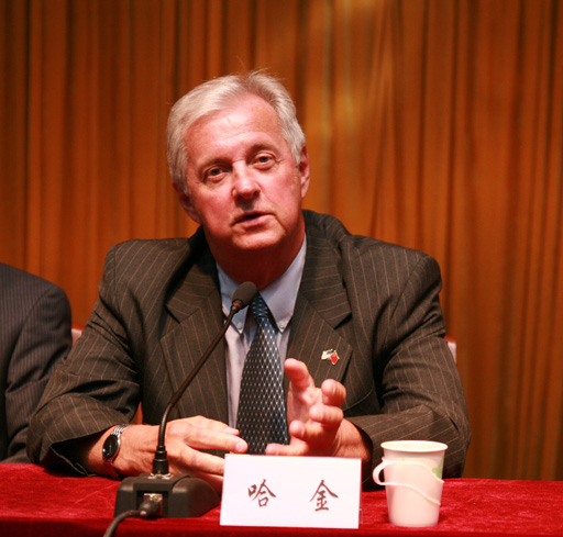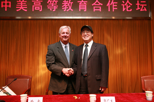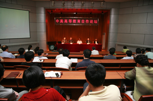 下午,我校在報告廳召開中美高等教育論壇,美中合作發(fā)展委員會執(zhí)行主席、哈佛大學東亞研究中心研究員李建生博士,美國馬薩諸塞州共和黨前執(zhí)行主席哈金先生,高等教育委員會代表鄭澈,市教委副主任郭廣生,以及我校領導王慧敏、王有年、高東、高喜軍、杜曉林、鄭一淳及中層以上干部出席此次論壇。論壇有校長王有年教授主持。