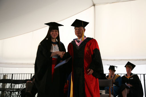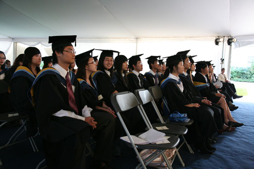 在英方畢業典禮結束后,隨即又召開了我校學位授予儀式,儀式由國際學院院長譚鋒主持,訪問交流團成員教務處處范雙喜、黨委宣傳部部長程春生、后勤服務集團總經理王秀德,哈珀亞當斯大學學院外事處主任Brian J. Revell教授和英方相關教師也出席了本儀式。黨委副書記羅維忠首先發表了熱情洋溢的講話,代表學校向國際學院中英項目本科2008屆所有畢業生表示衷心的祝賀,愿他們在今后的工作學習中再接再厲,為母校添彩,為祖國增光。隨后畢業生在Brian J. Revell教授一一宣讀名單后再次登上主席臺,接過了北京農學院學士學位證書。