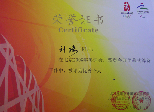 基礎(chǔ)教學(xué)部直屬黨支部書(shū)記 劉琦 老師,在北京 2008年奧運(yùn)會(huì)、殘奧會(huì)開(kāi)閉幕式籌備工作中表現(xiàn)突出,被北京奧組委開(kāi)閉幕式工作部、北京奧運(yùn)會(huì)開(kāi)閉幕式運(yùn)營(yíng)中心評(píng)為優(yōu)秀個(gè)人。